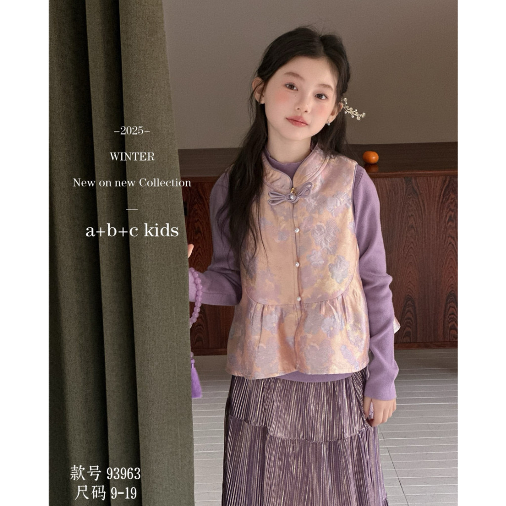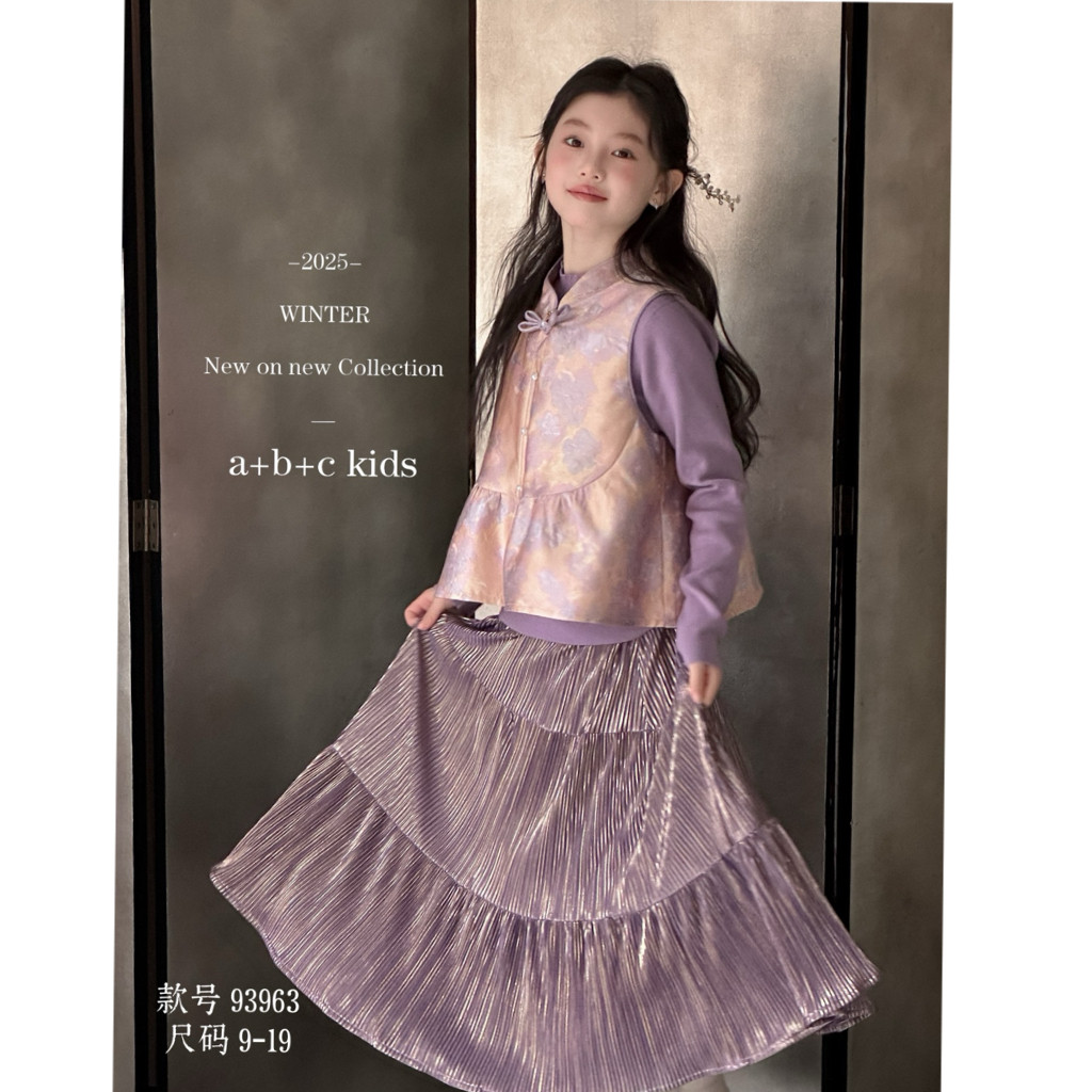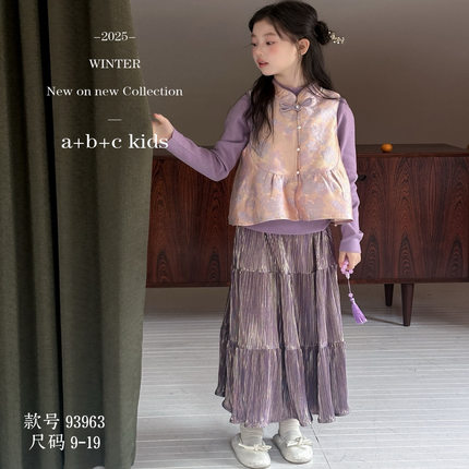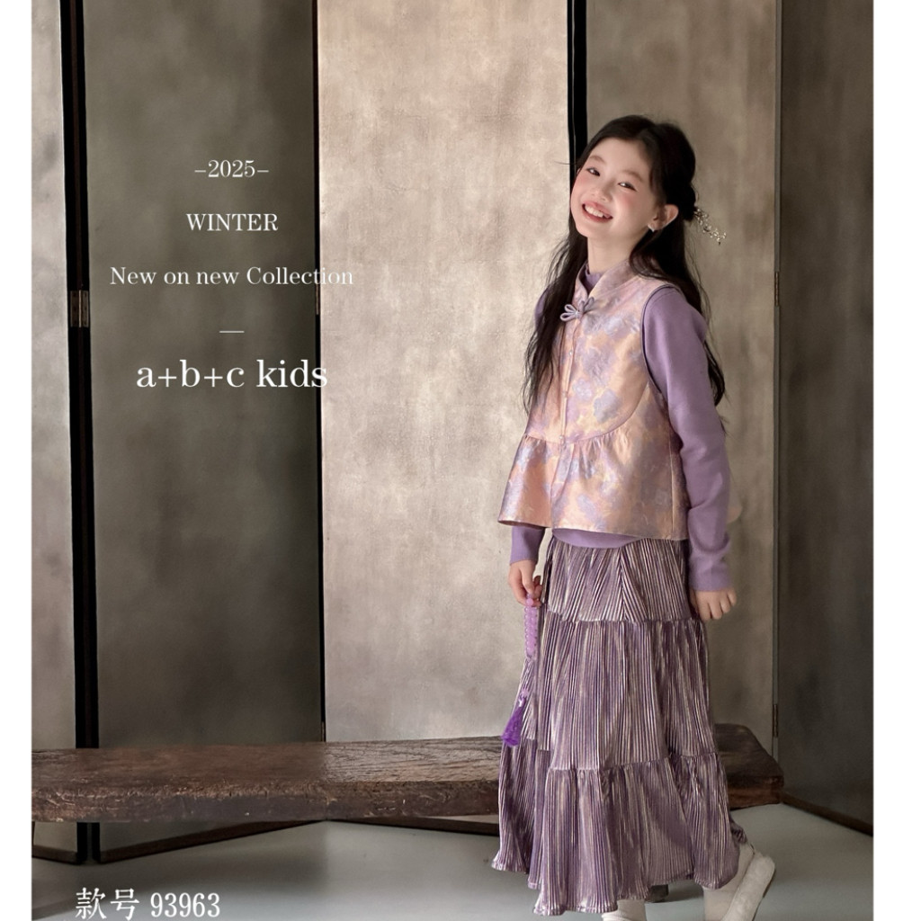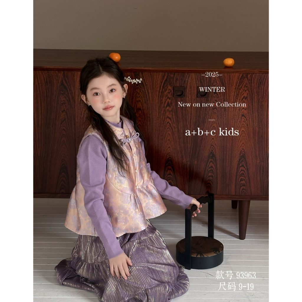 【国风套装】女童中大童冬季甜美背心+针织打底衫+长裙三件套装