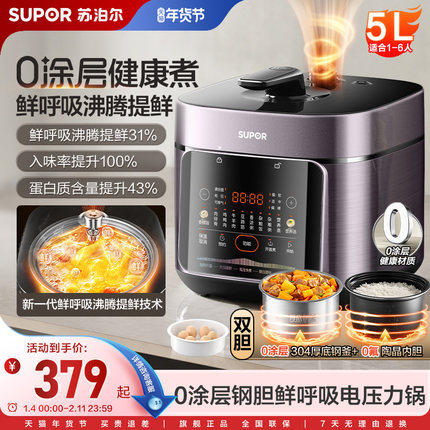 苏泊尔鲜呼吸电压力锅家用5L大容量球釜双胆智能多功能高压锅