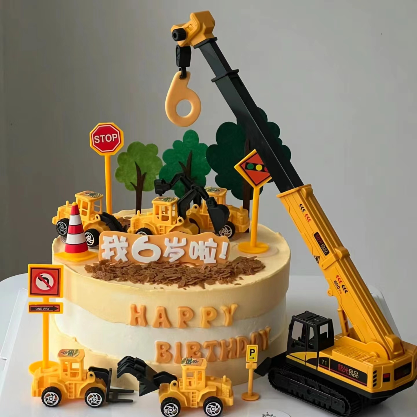 吊车蛋糕装饰摆件挖土机推土机工程车儿童男孩儿童生日甜品台插件