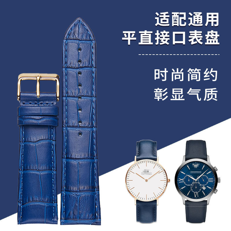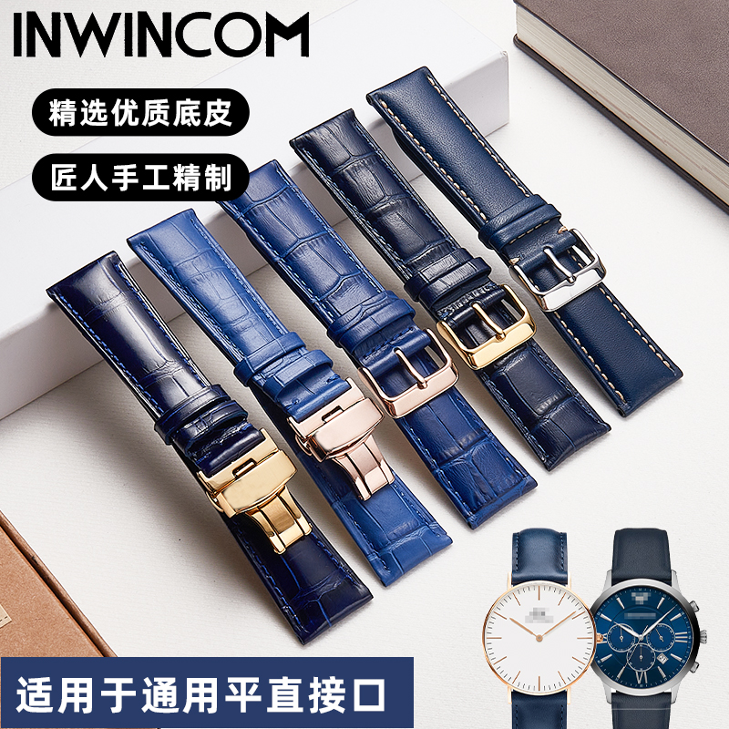真皮表带蓝色男手表带适配阿玛尼西铁城飞亚达罗西尼22mm真皮表带
