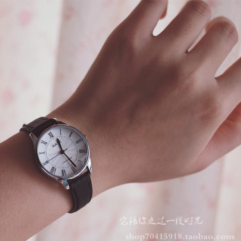 古早经典款复古罗马字白壳黑皮带手表 小众气质男女情侣学生考试