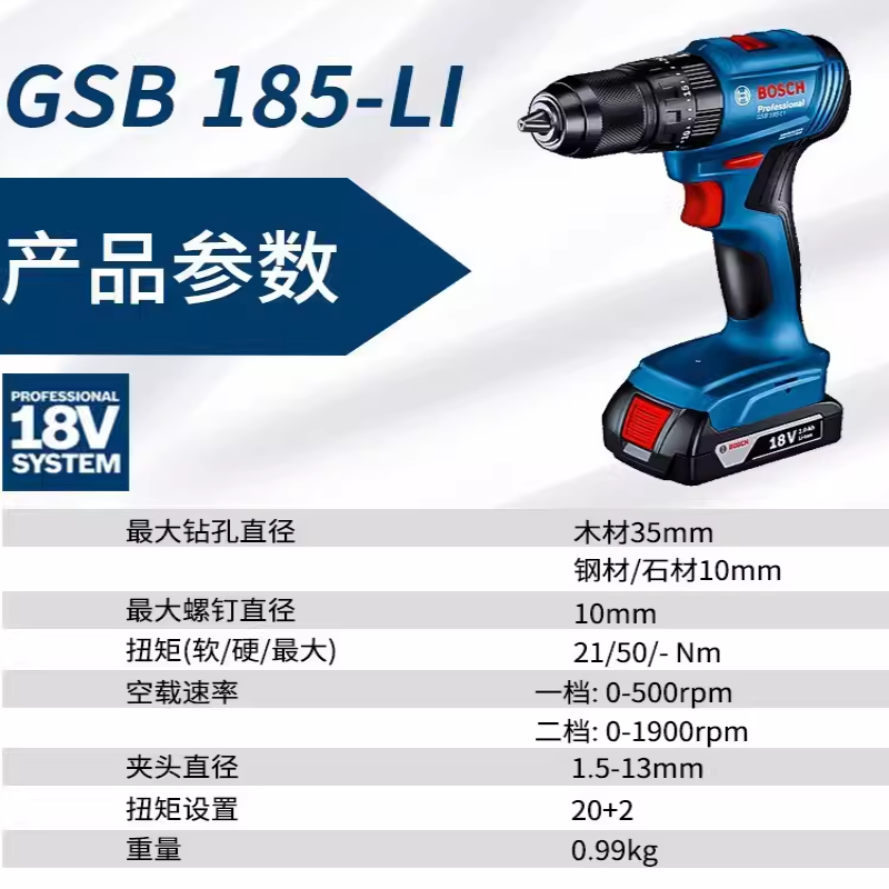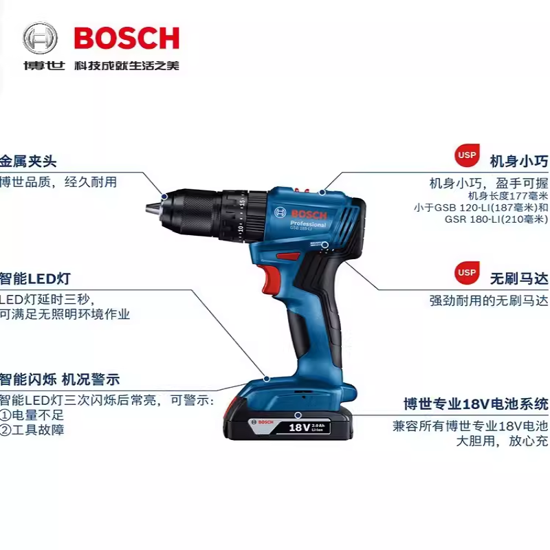 博世无刷锂电手电钻GSR/GSB185冲击钻充电式多功能家用电动螺丝刀