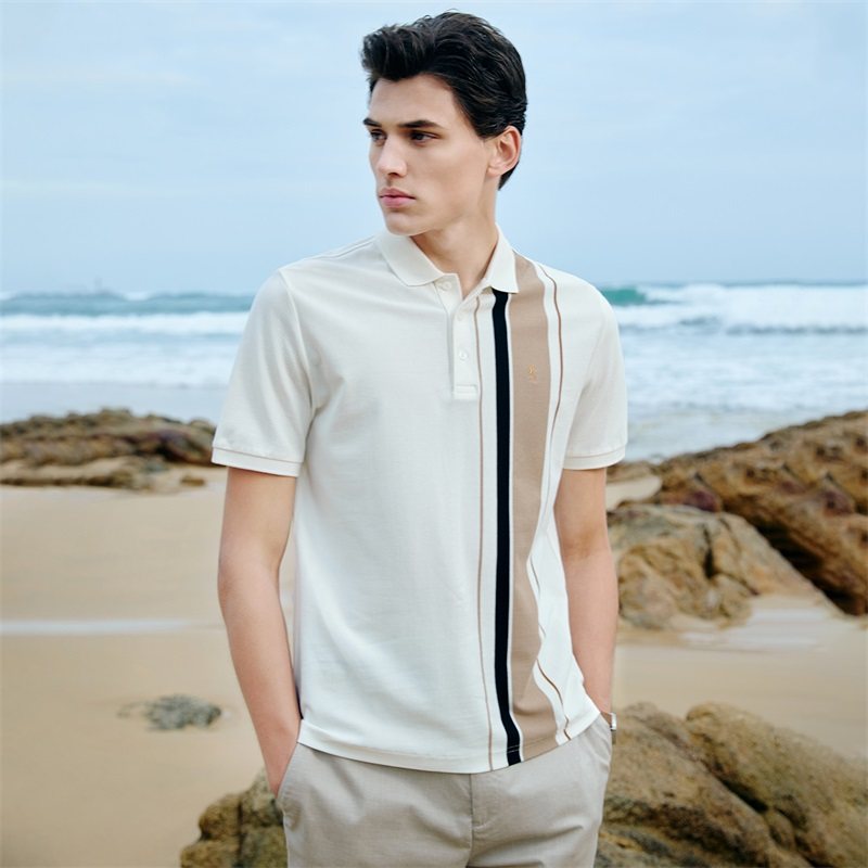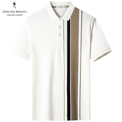 【纯棉透气】与狼共舞翻领短袖T恤男2024夏季新款条纹透气polo衫