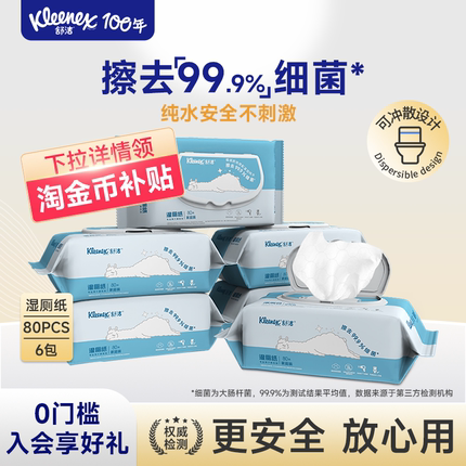 舒洁湿厕纸湿厕巾家庭装80抽*6包洁厕湿纸巾擦屁屁厕纸厕所湿巾