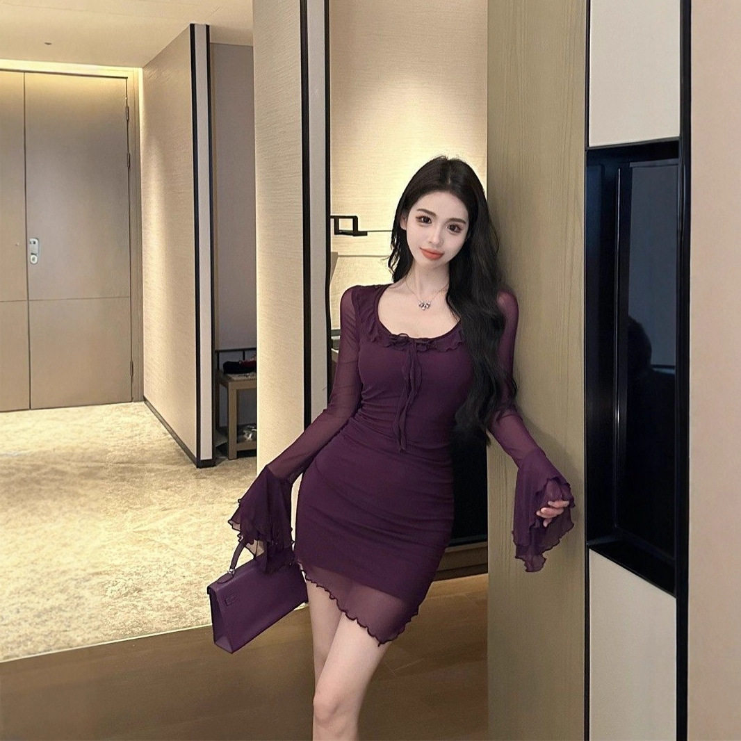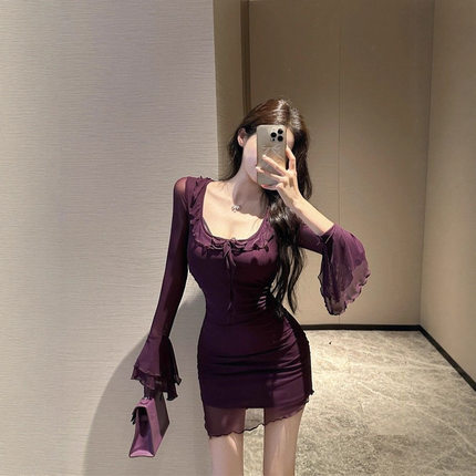 御姐风性感辣妹显身材修身包臀连衣裙时尚紫色漂亮独特绝美小裙子