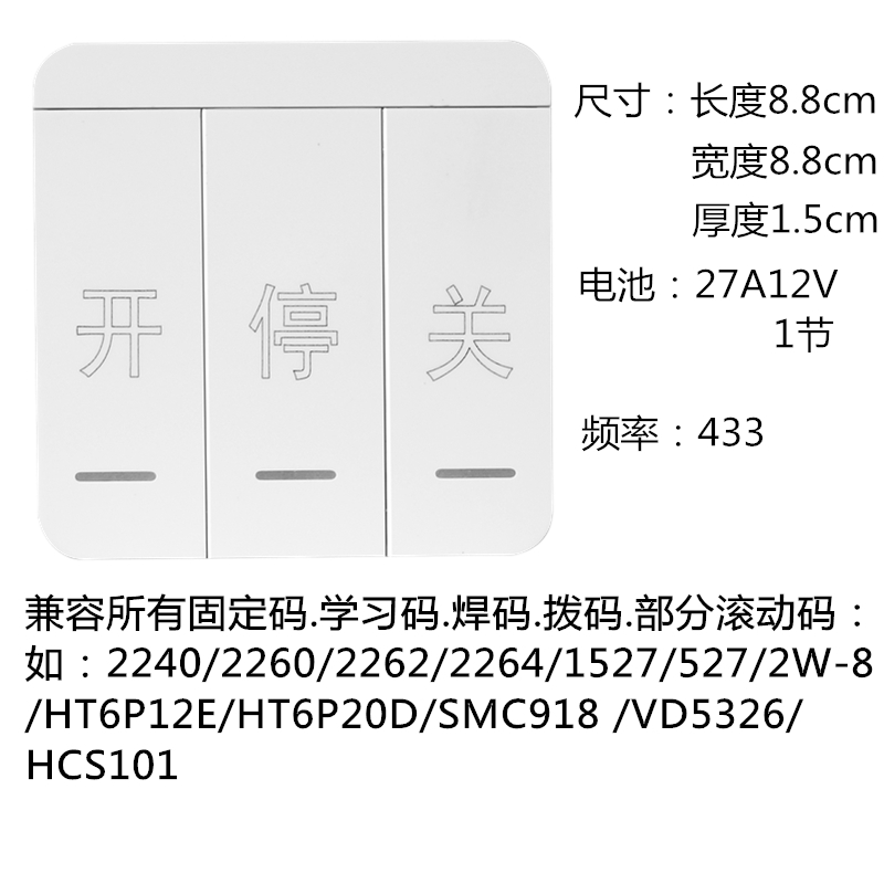 433对拷贝遥控器卷帘门车库门电动门伸缩门通用86型无线墙壁开关