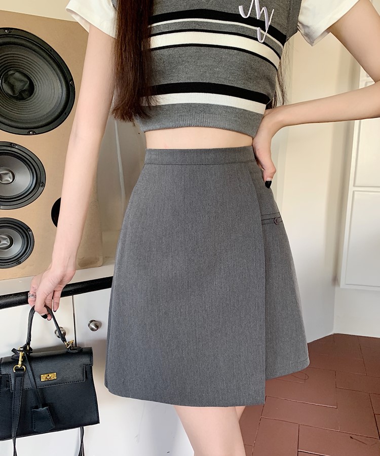 灰色半身裙大码高腰a字裙子夏胖mm显瘦不规则半裙高级感气质短裙