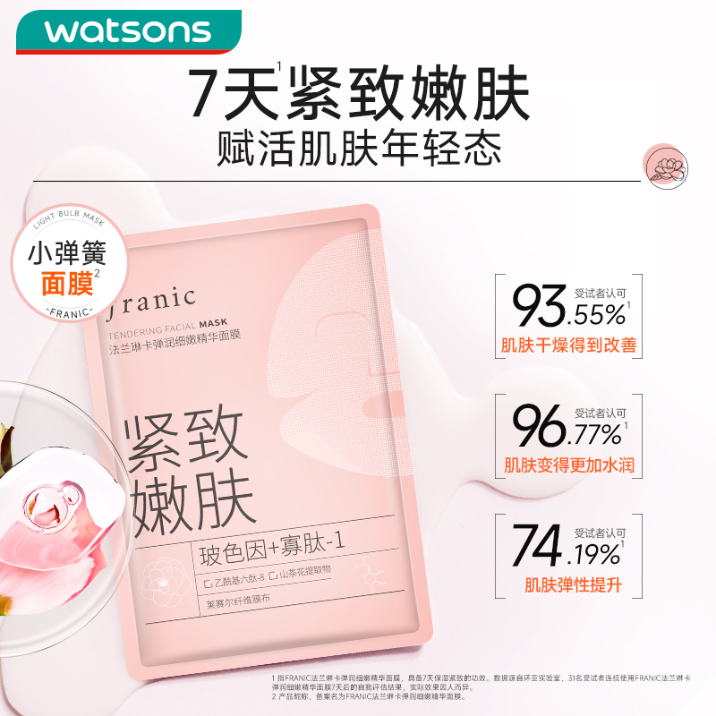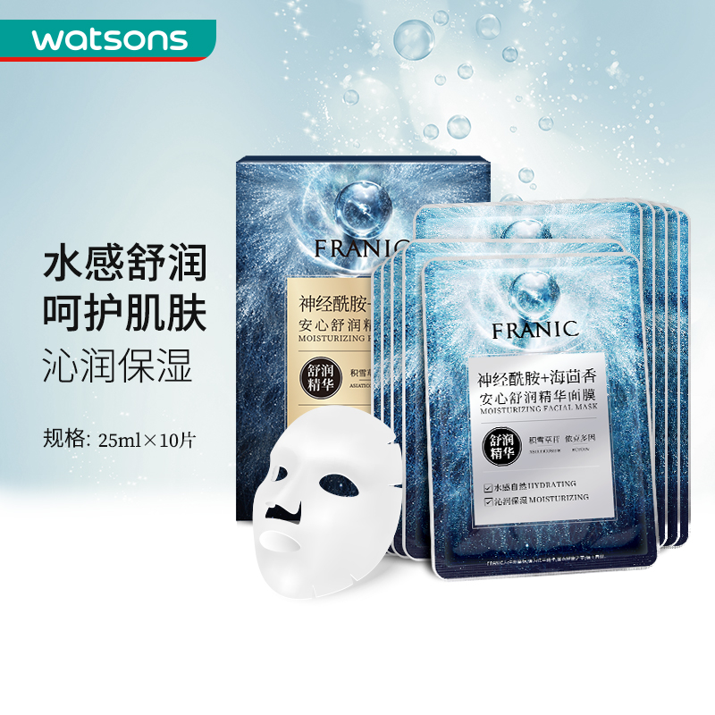 屈臣氏FRANIC法兰琳卡澎润保湿安心舒润弹润细嫩精华面膜10片