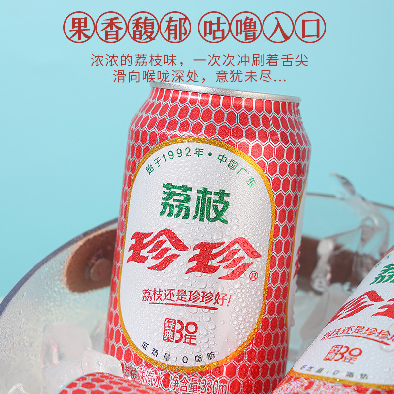 珍珍荔枝味汽水330ml罐装0脂8090怀旧饮料东北碳酸饮料果味童年