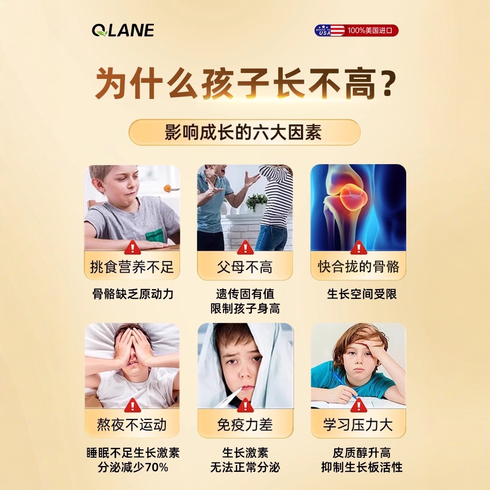 Qlane成长赖氨酸氨基丁酸维生素d学生青少年钙铁锌镁进口儿童钙片