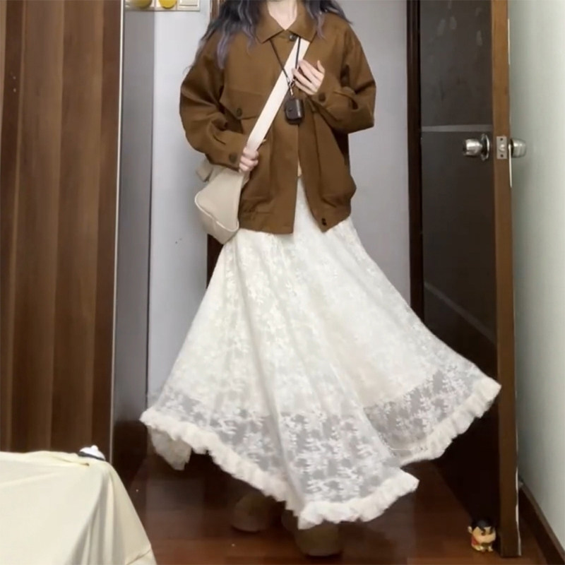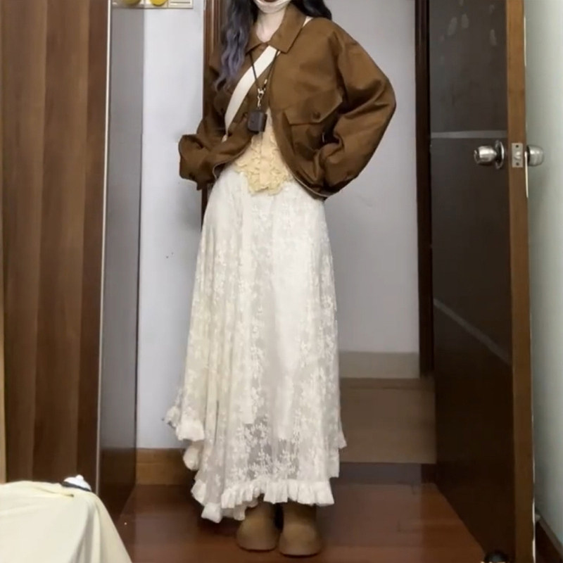 不规则蕾丝重工长裙白色半身裙大码女春季流行风格梨型伯克利裙子