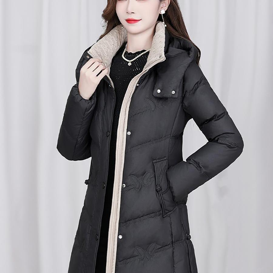 冬装中长款羽绒棉服外套女大码中老年修身显瘦版连帽时尚妈妈棉衣