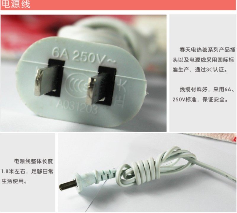 春天牌保暖绒系列 单人双人三人双控调温N安全防水无辐射电热毯