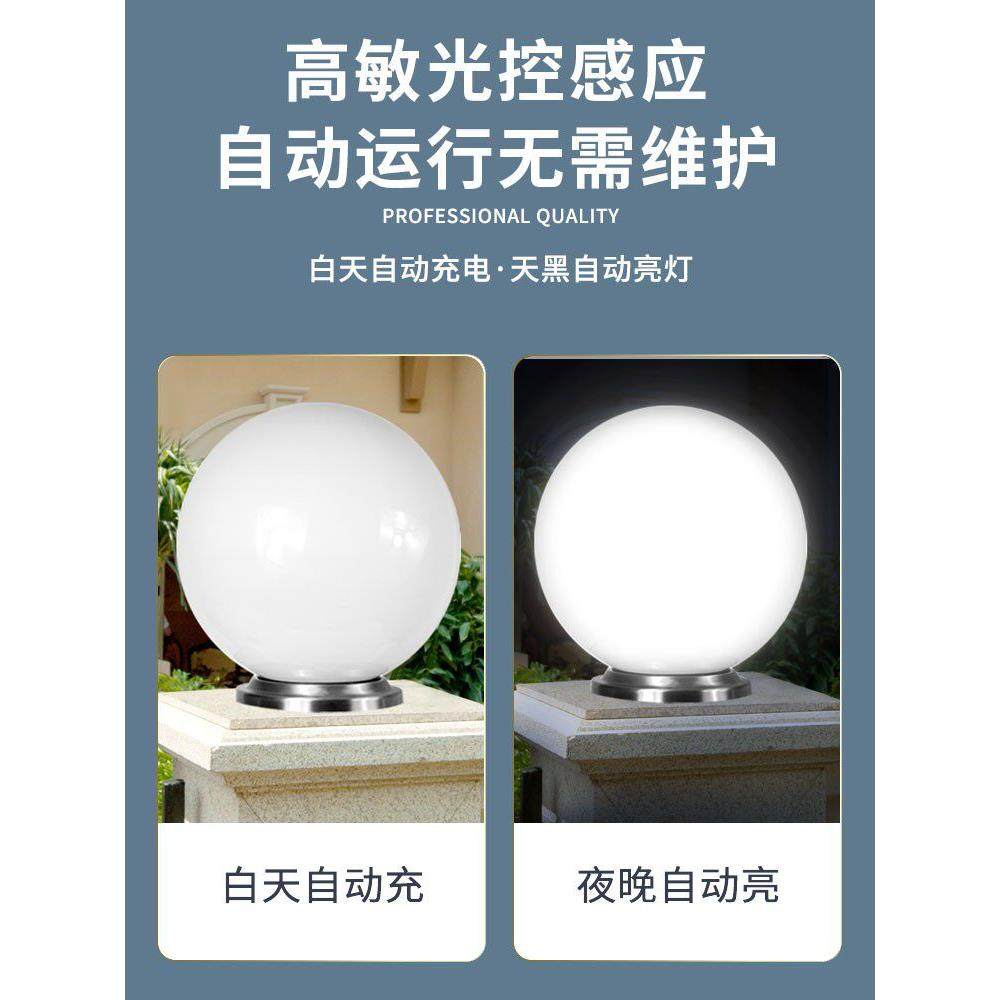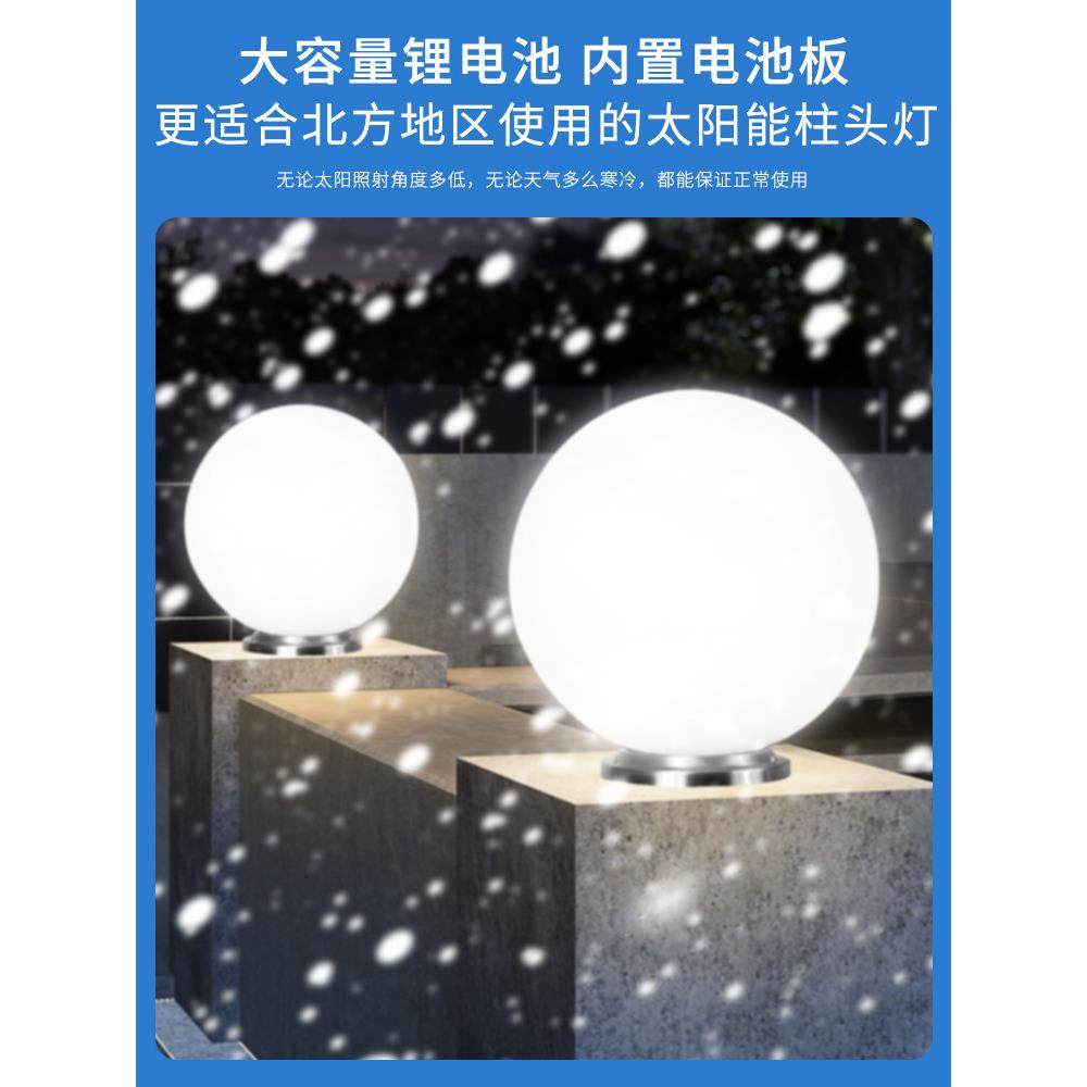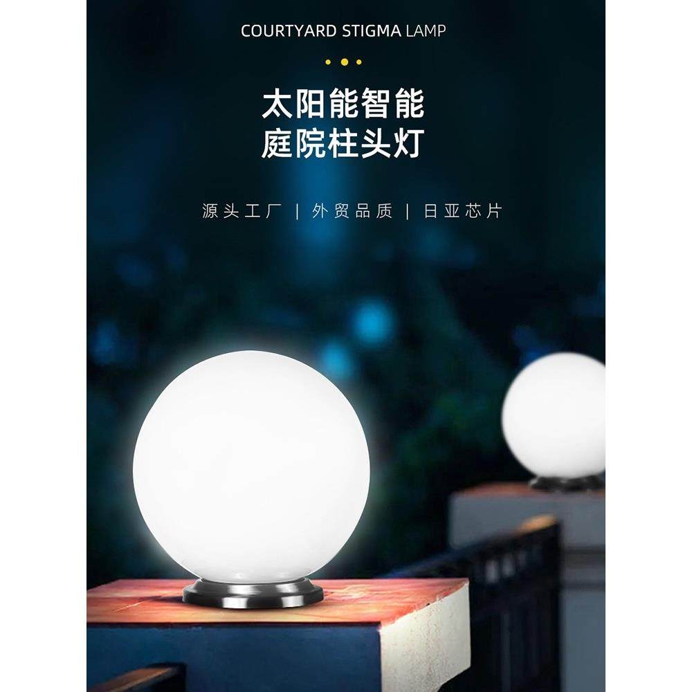 2025新款太阳能柱头灯庭院柱子灯圆球形别墅大门口户外防水围墙灯
