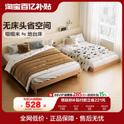 全友家居原木风小户型无床头1.5m单人床卧室1米8榻榻米地台双人床