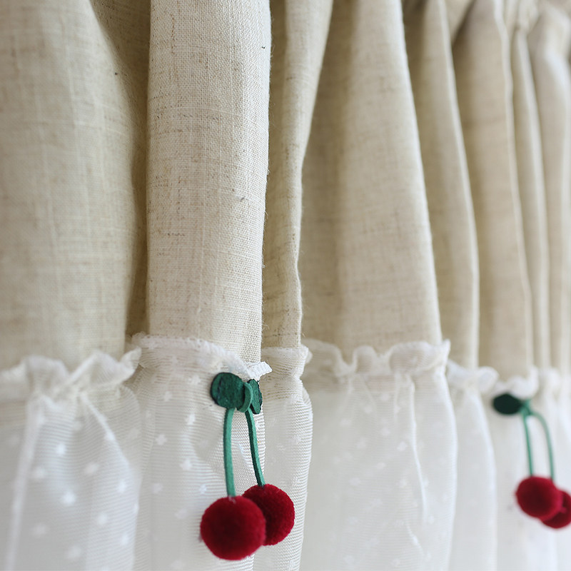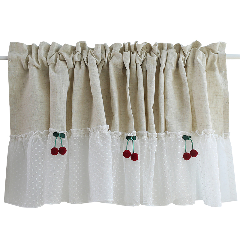 北欧文艺美式乡村田园法式棉麻半帘短帘门帘小窗帘樱桃蕾丝穿杆