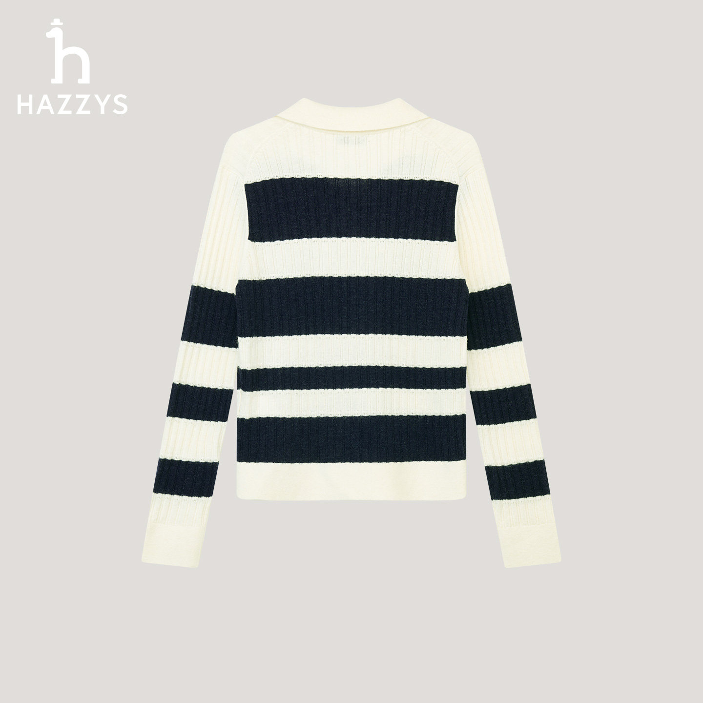 【商场同款】Hazzys哈吉斯秋季女时尚条纹针织衫羊毛衫