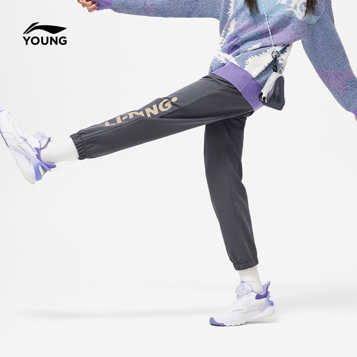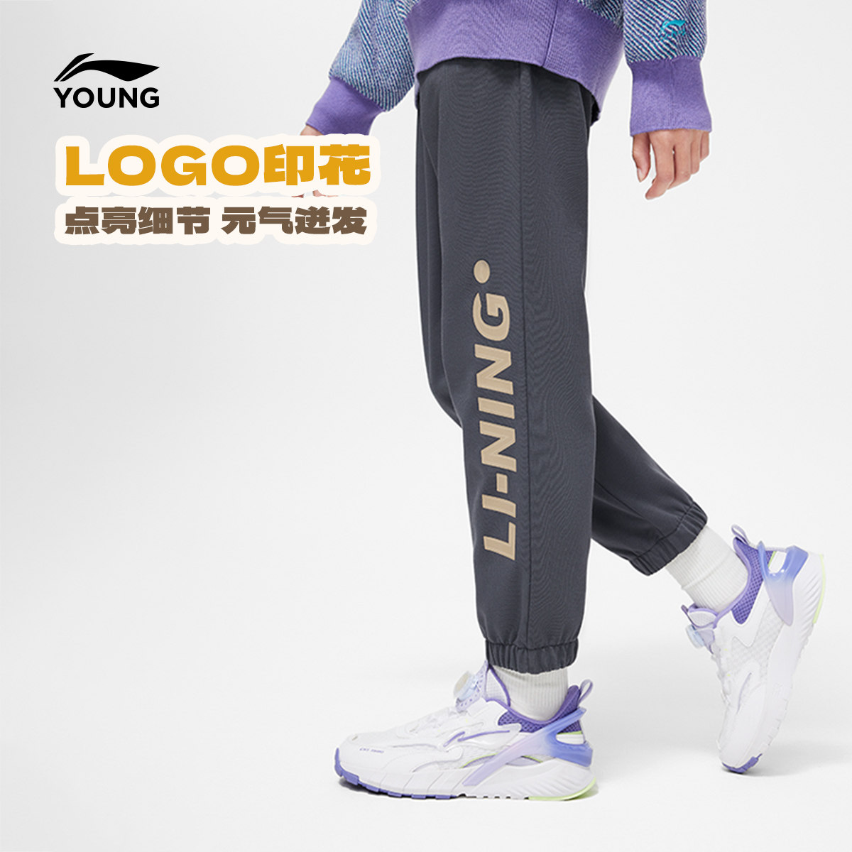 李宁童装卫裤男女大童运动生活系列青少年春季休闲束脚针织童装