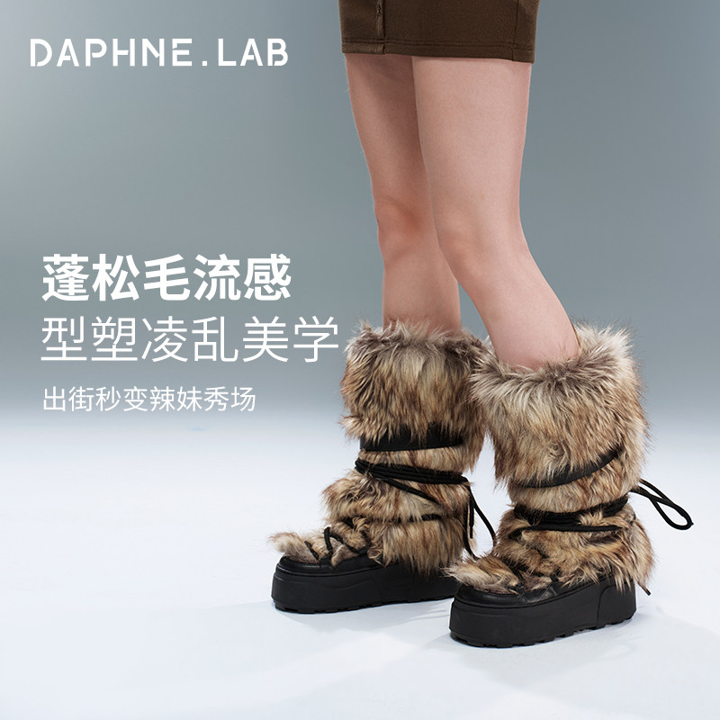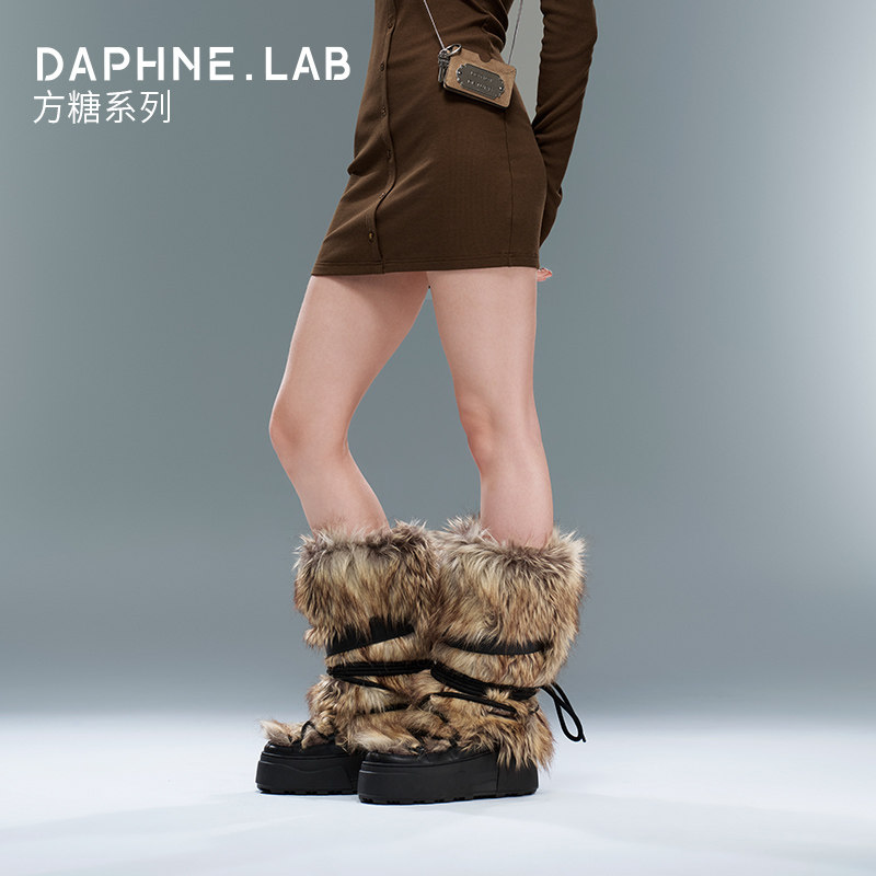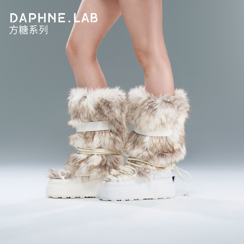 欧阳澄汐同款DAPHNE LAB方糖毛绒长筒月球靴25冬厚底雪地靴月球靴
