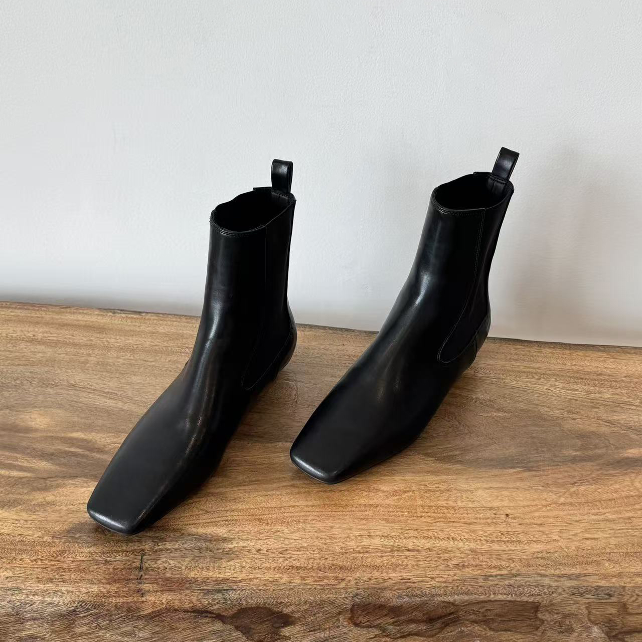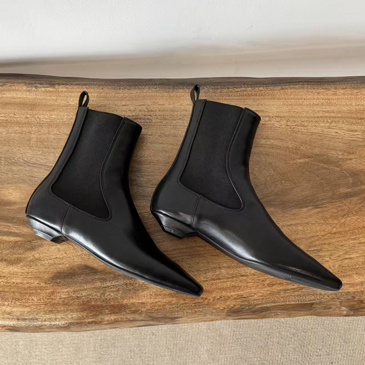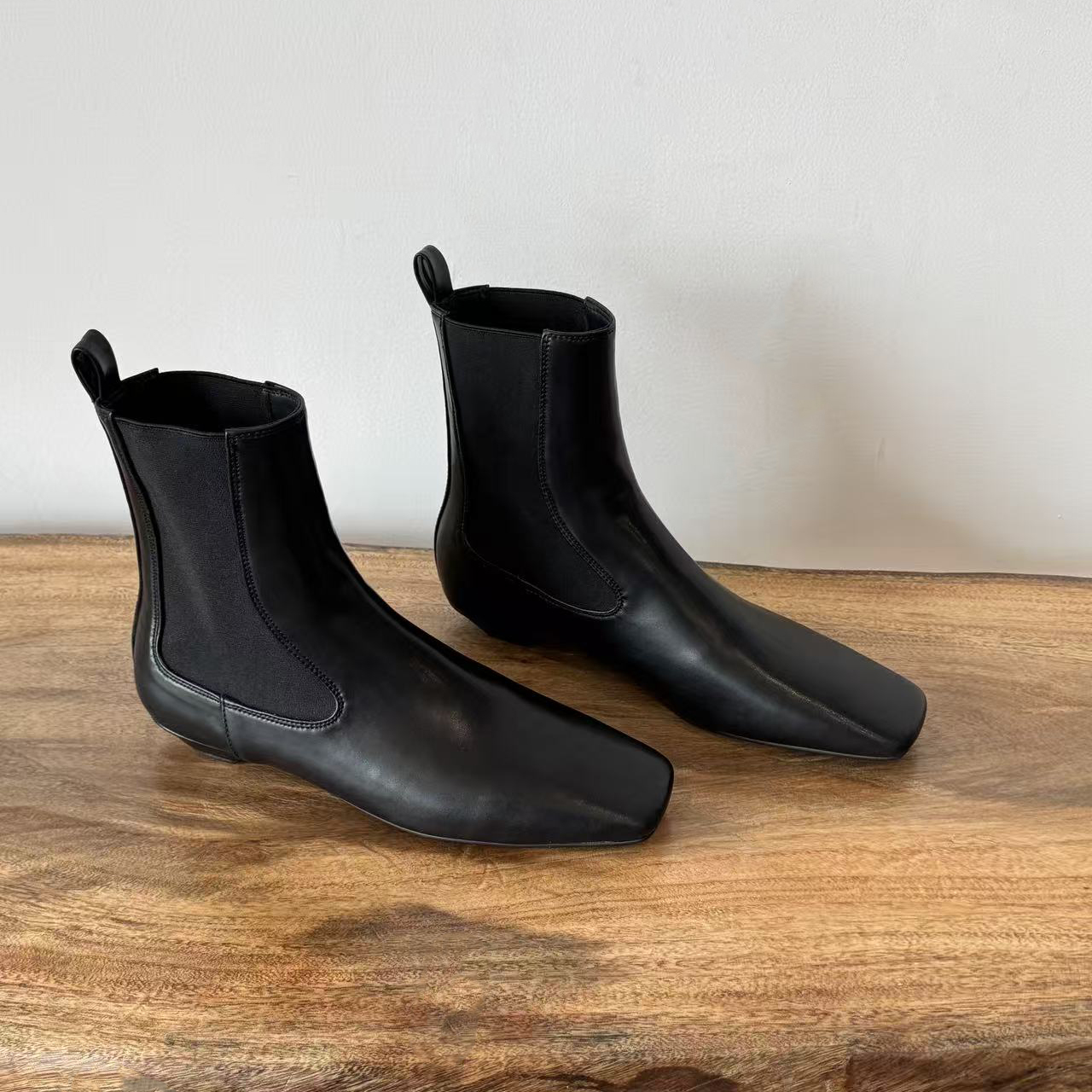 泓阳琳~黑色切尔西小短靴女2025冬季新款爆款平底马丁靴子秋女款