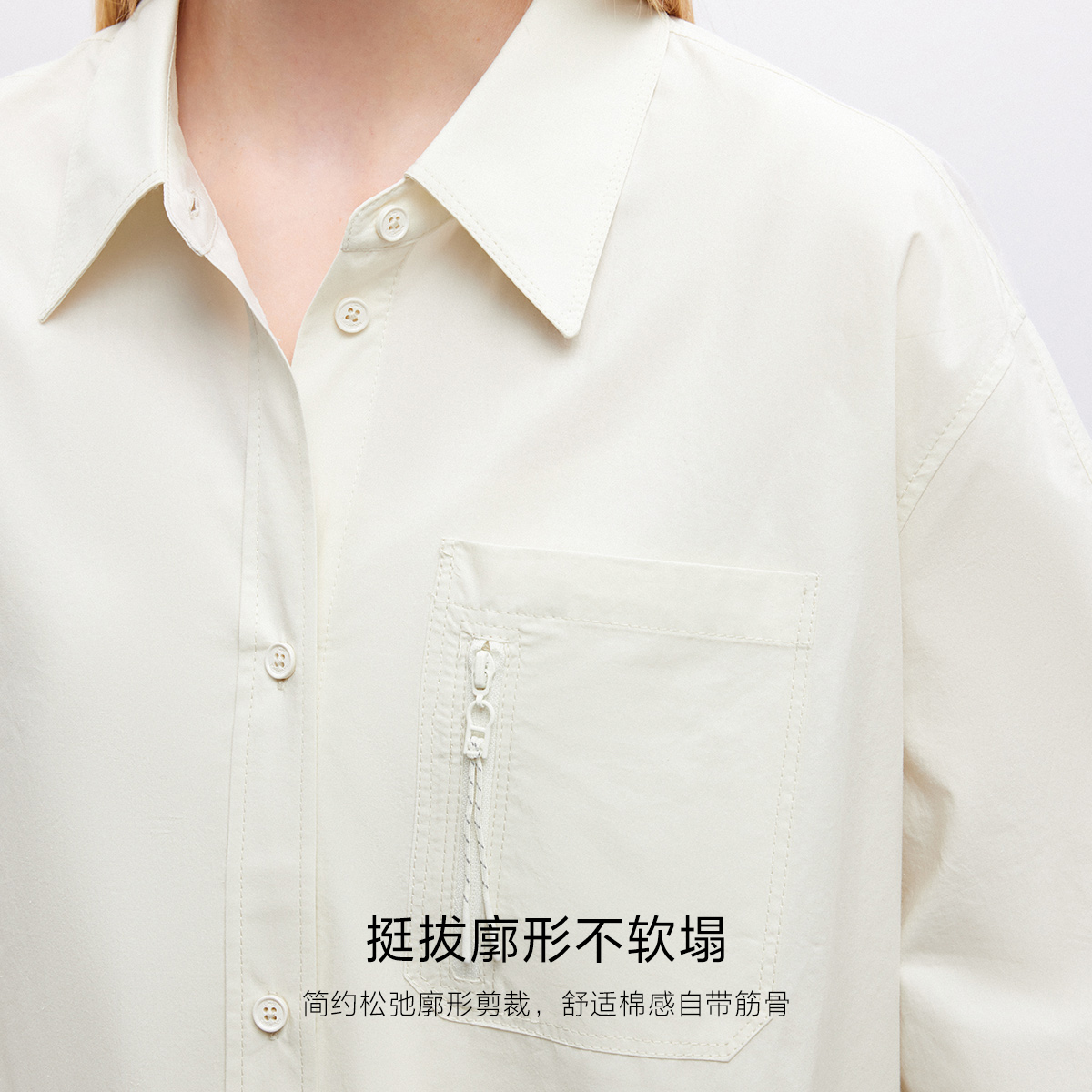 ONLY2025秋季新款纯棉两侧内抽绳设计纯色宽松挺阔翻领长袖衬衫女