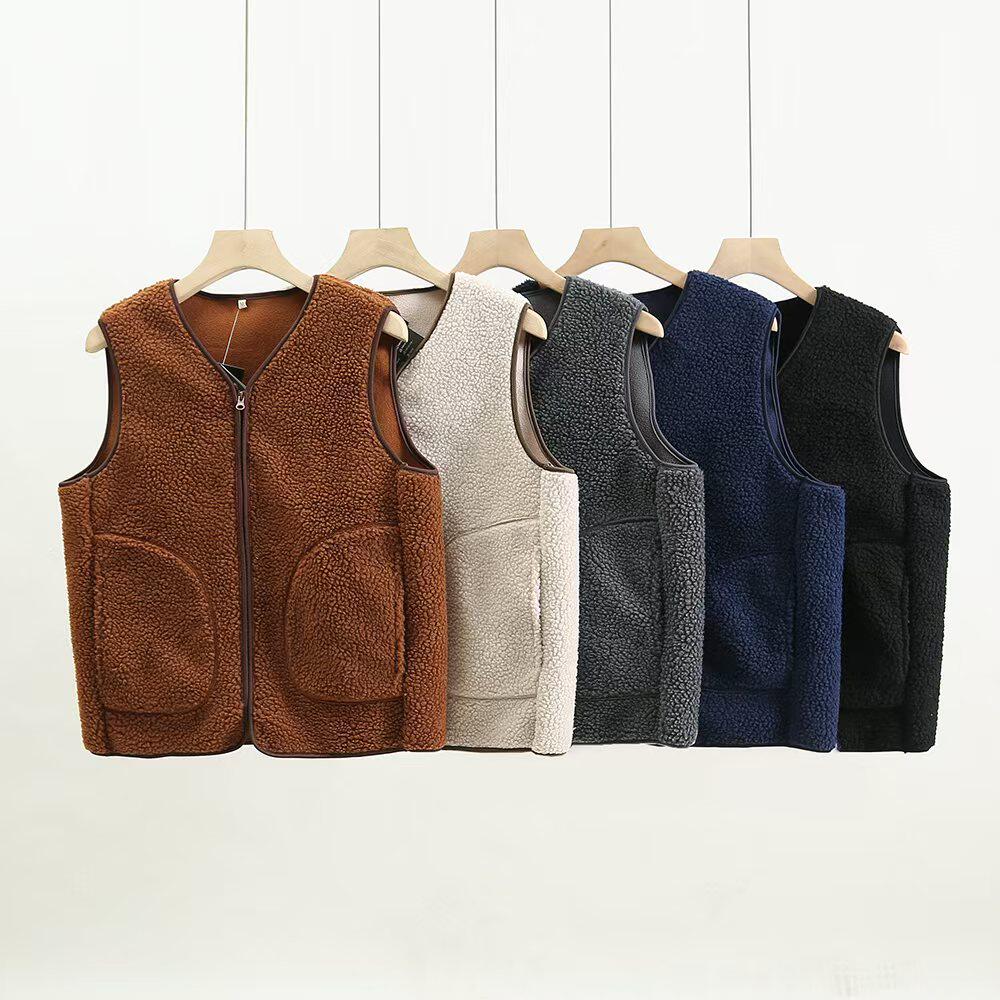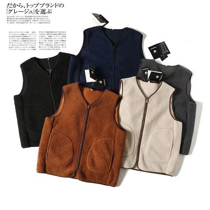 双面绒情侣款V领百搭纯色马甲