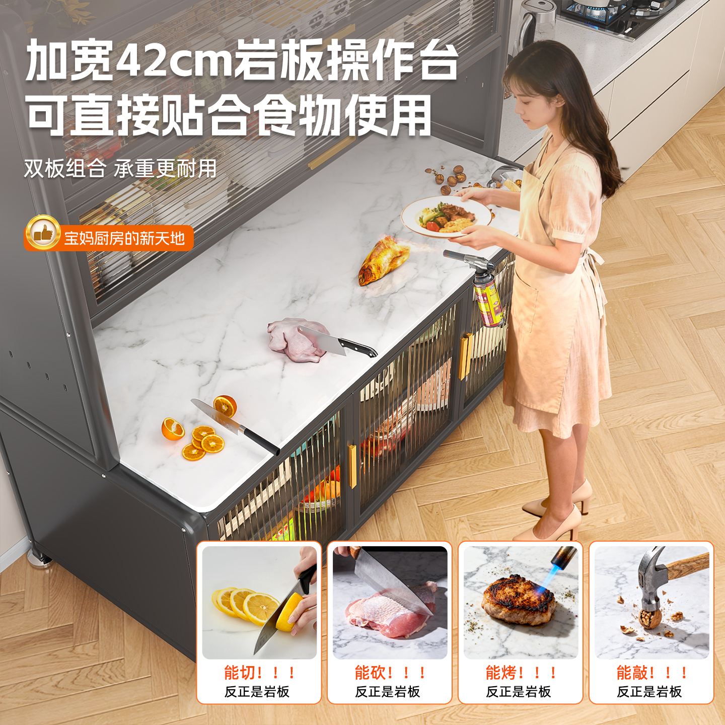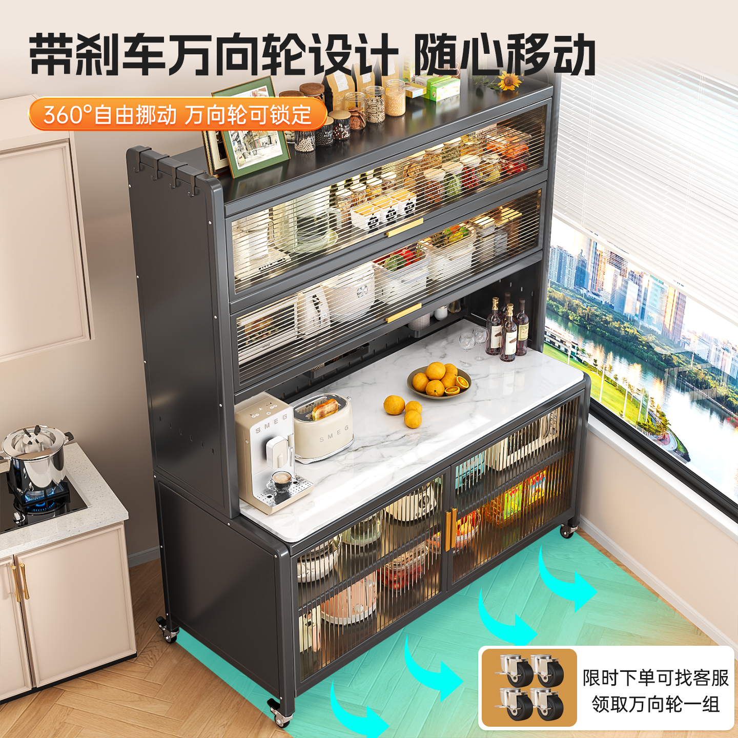 岩板厨房置物架家用餐边储物柜落地多层微波炉多功能收纳碗柜橱柜