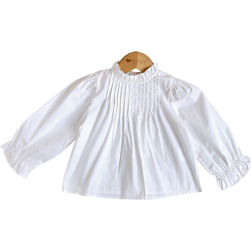 女童立领压褶灯笼喇叭袖洋气衬衫
