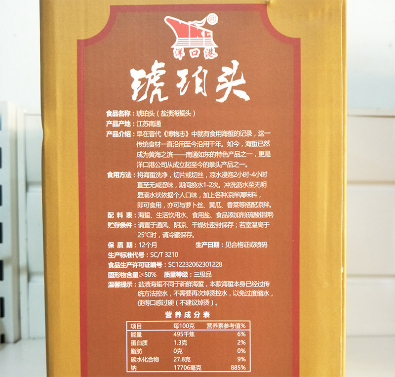 南通特产如东洋口港琥珀头海蜇头鲜脆非即食2KG礼盒年货春节礼品