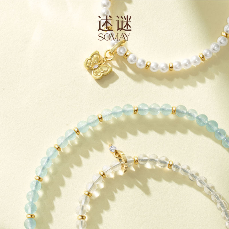 述谜新品首发转运系列海蓝宝手链女925银钻石手链生日礼物女