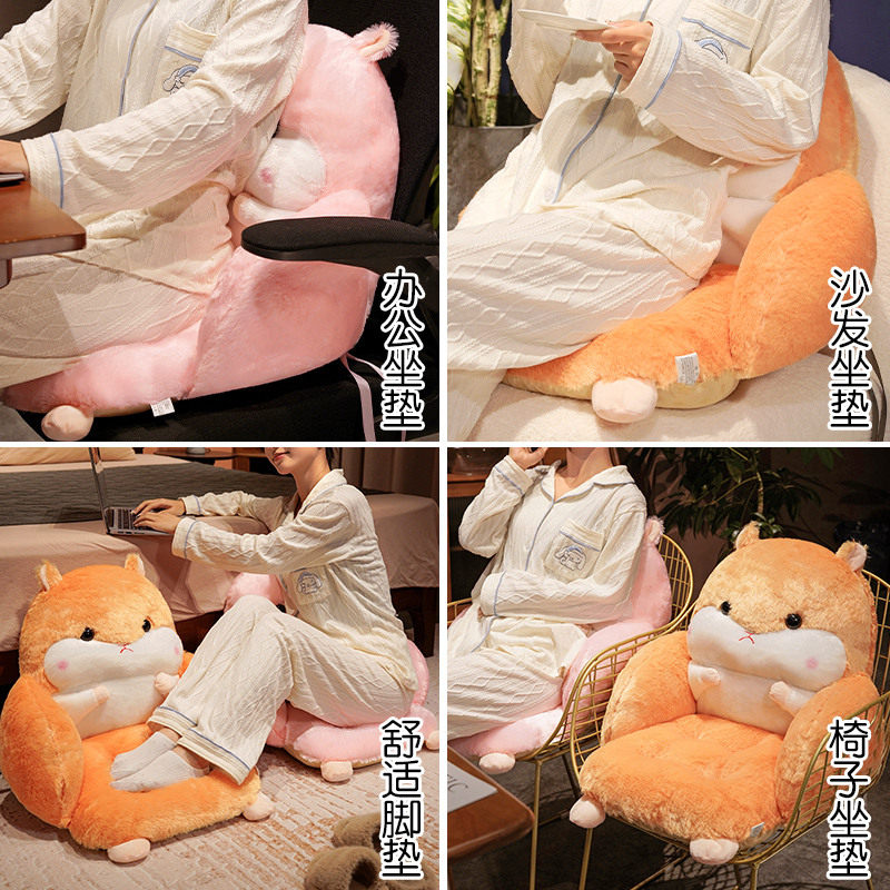 兔毛绒连体坐垫靠背一体办公室屁垫沙发垫学生宿舍座椅垫护腰靠垫