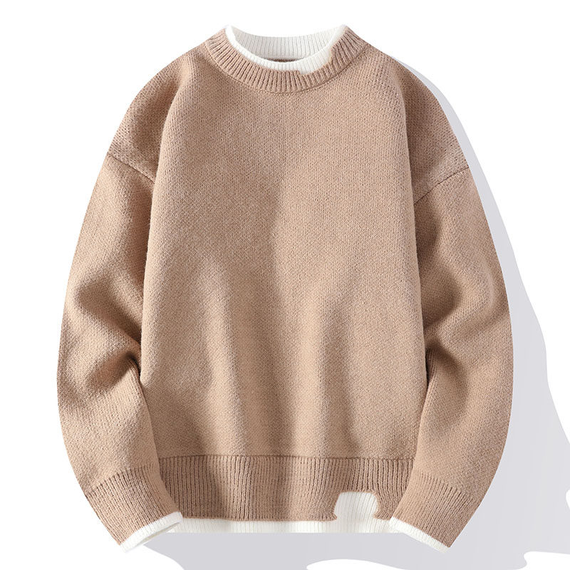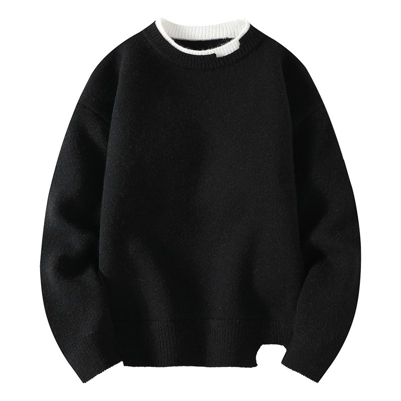 假两件毛衣男款绵羊绒2025秋冬季潮流加厚宽松圆领针织打底衫以純