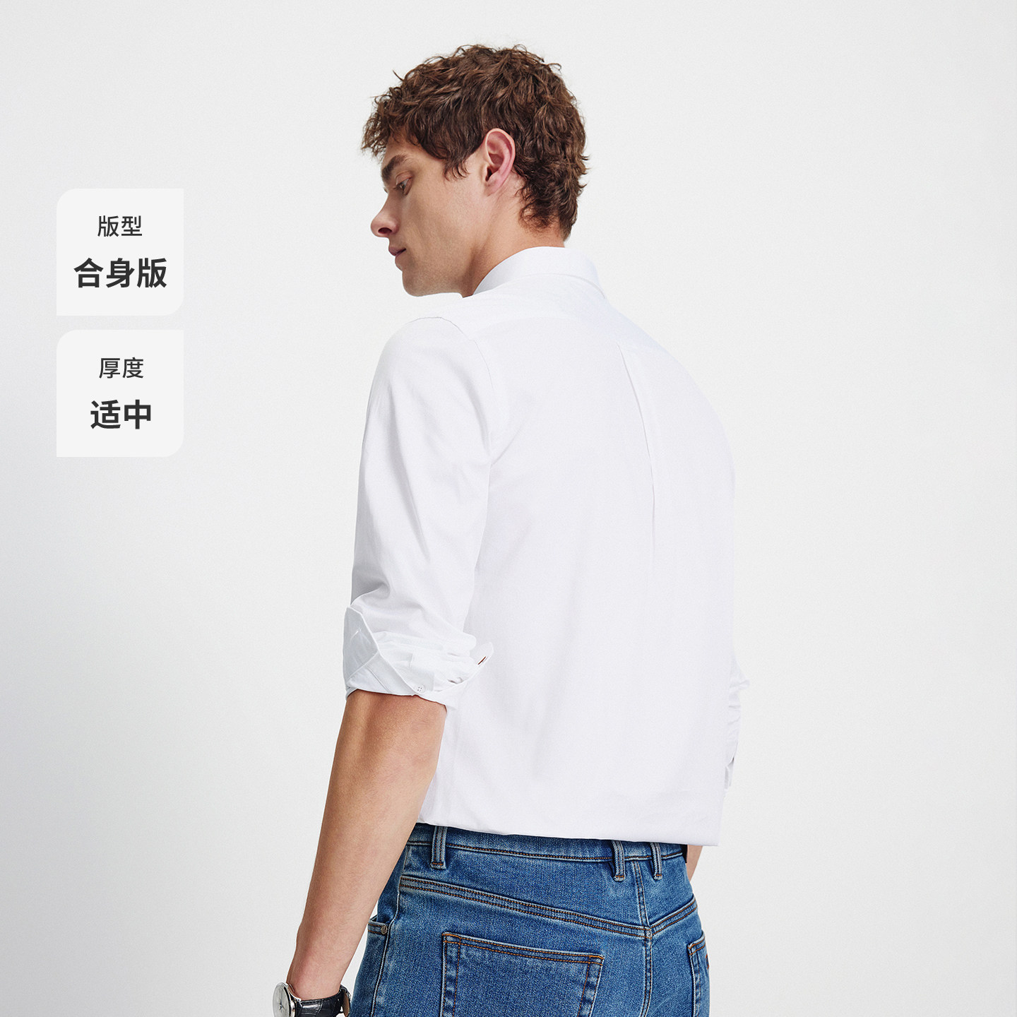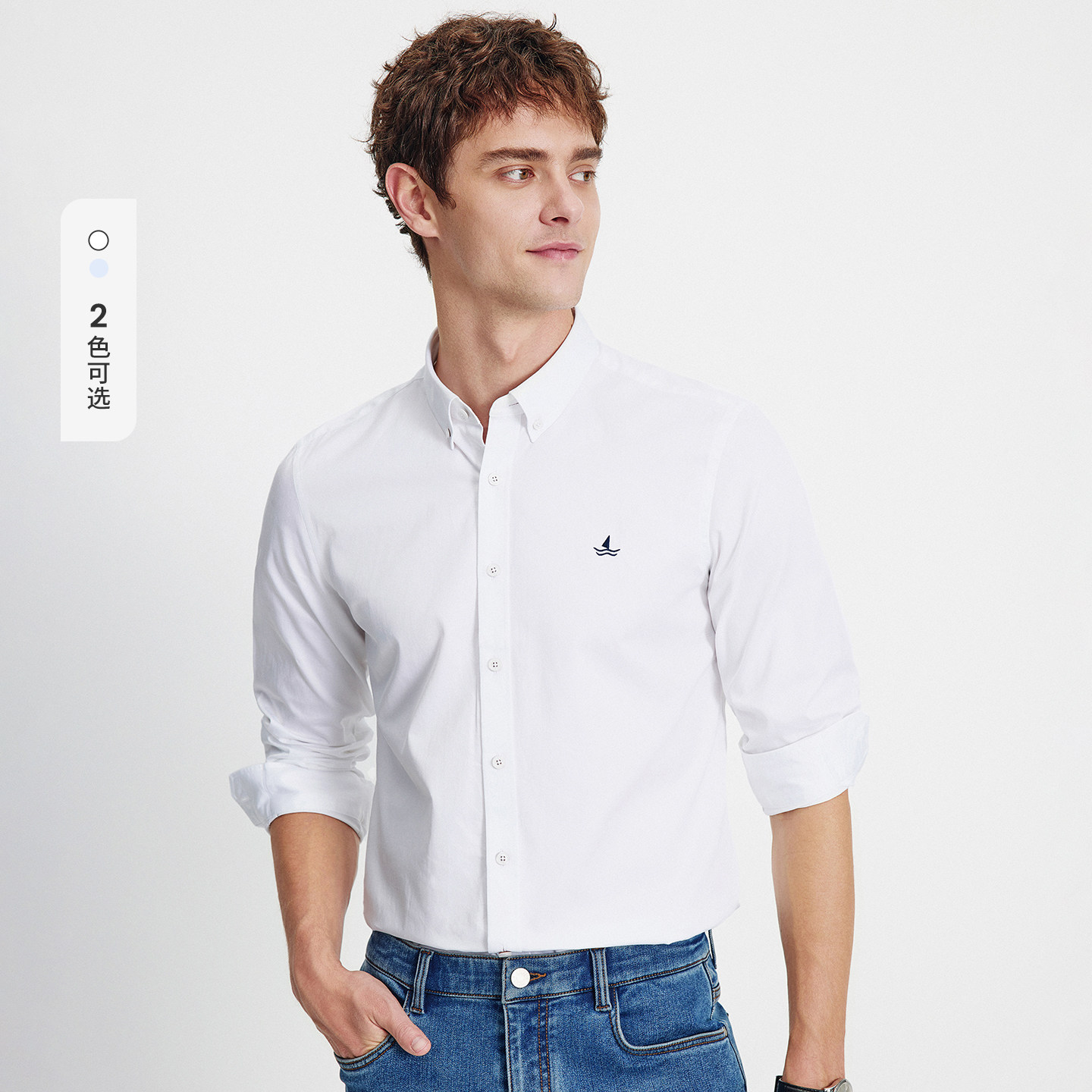 Navigare意大利小帆船白色纯棉衬衫男士春季新品休闲长袖衬衣