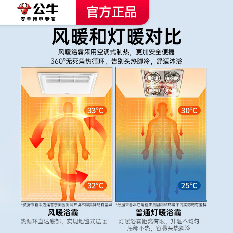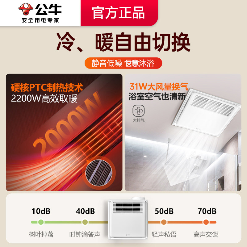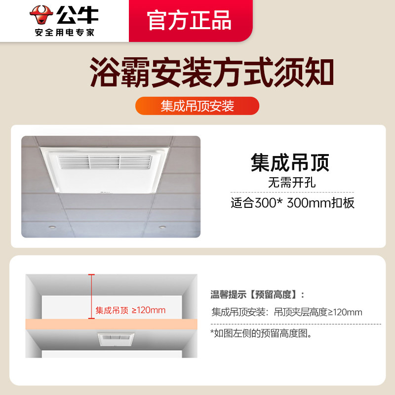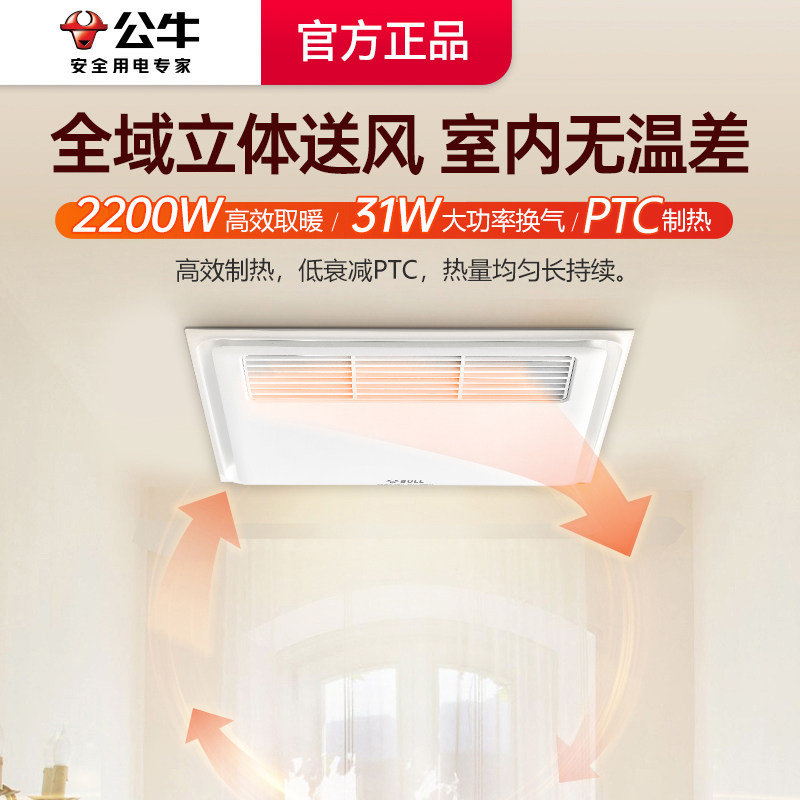 公牛集成吊顶风暖浴霸灯五合一卫生间厕所暖风扇浴室正方型取暖器