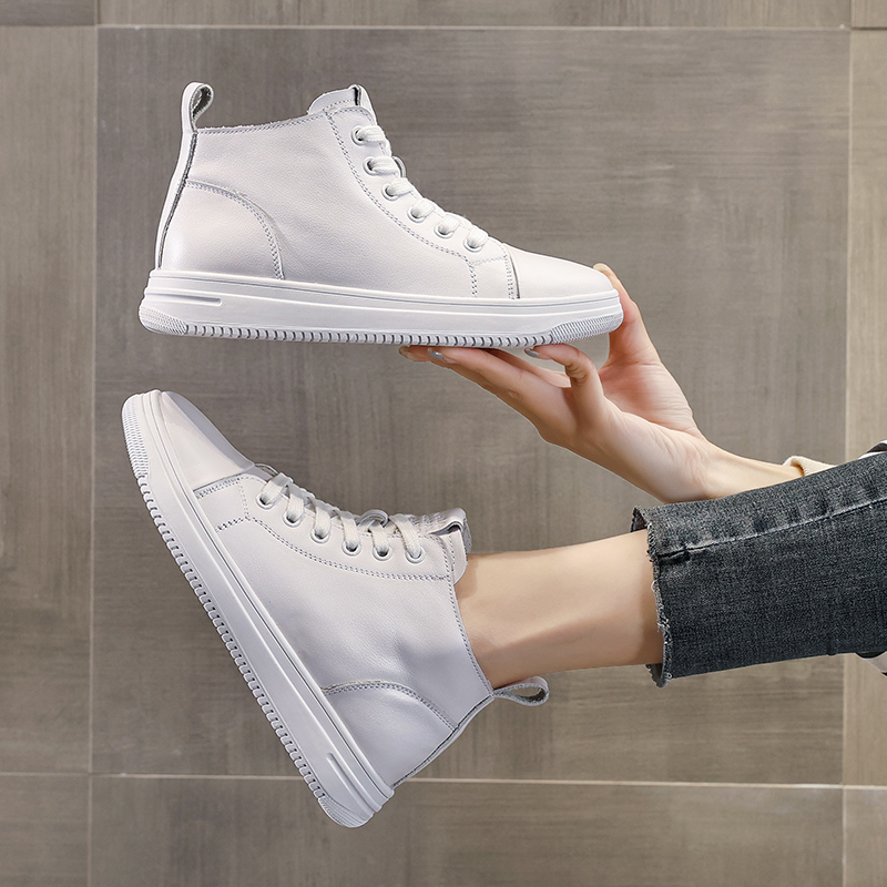 头层牛皮高帮小白鞋女真皮2024
