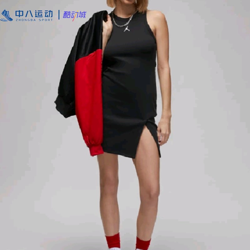 Nike耐克Jordan Brand修身包臀开衩刺绣logo无袖连衣裙DZ3347-010