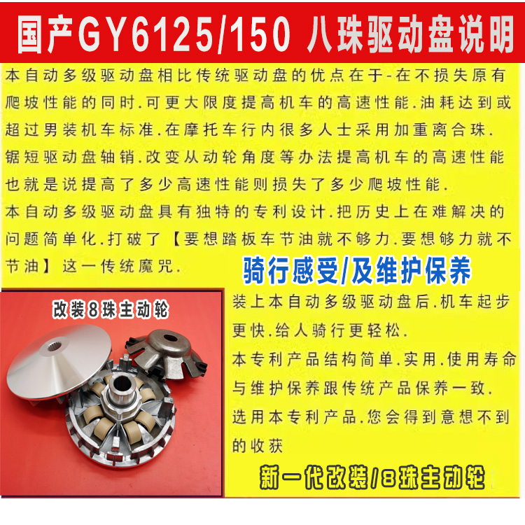 踏板摩托车改装配件GY6 125 150前驱动盘总成主动轮传动离合器8珠