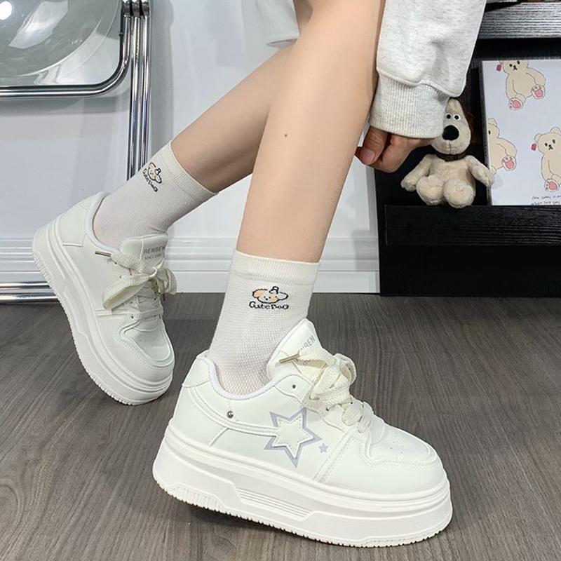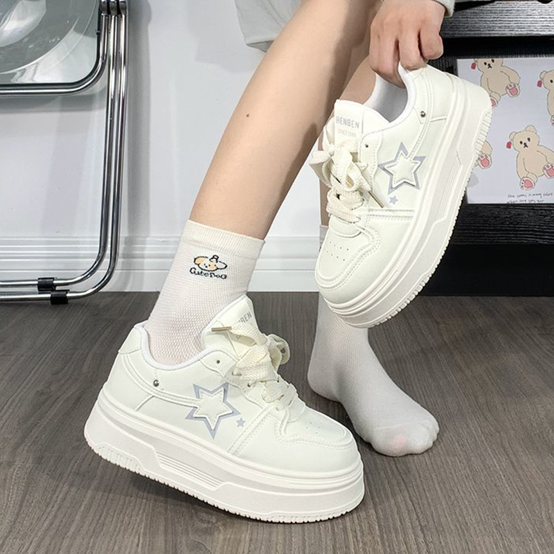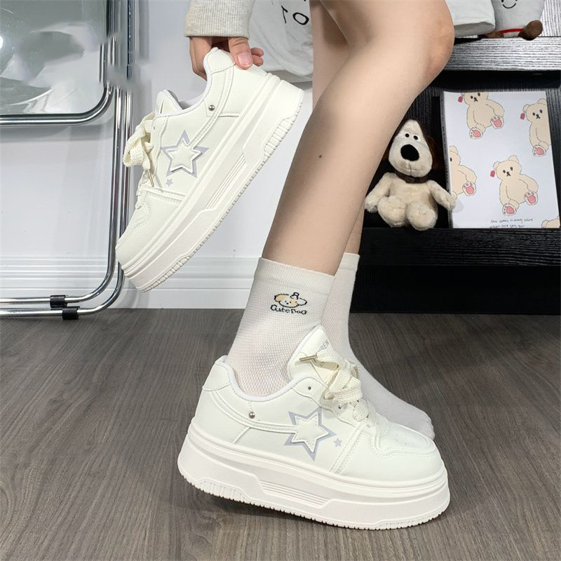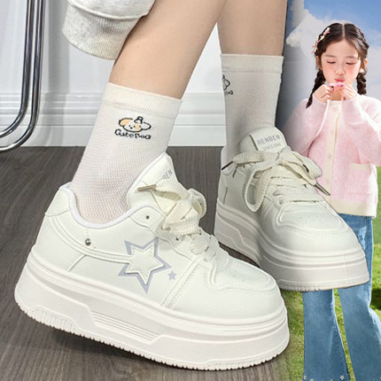 女童星星小白鞋2025年新款儿童运动鞋女孩板鞋学生百搭休闲鞋厚底