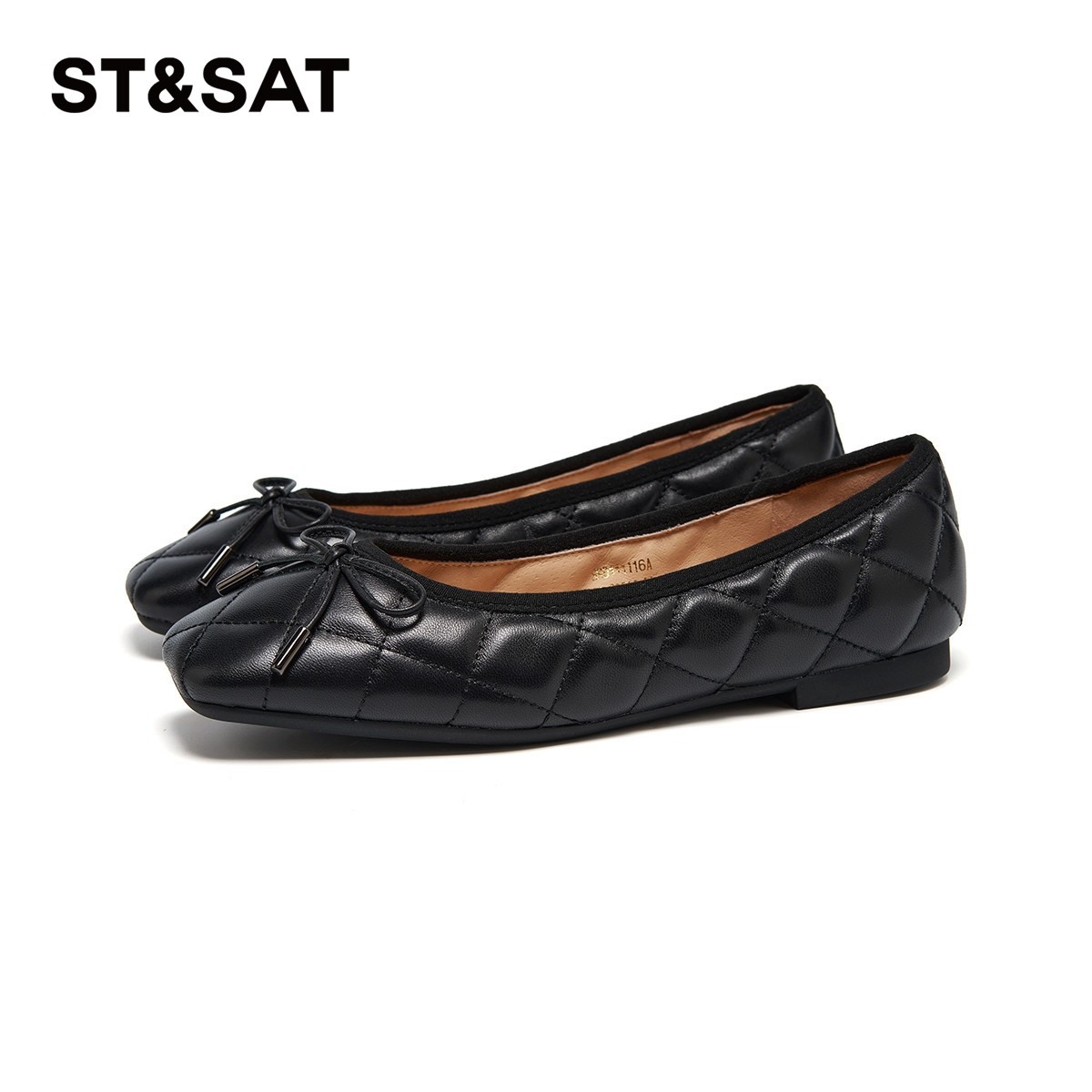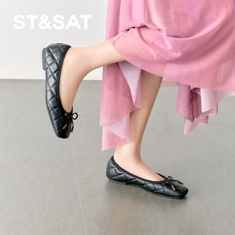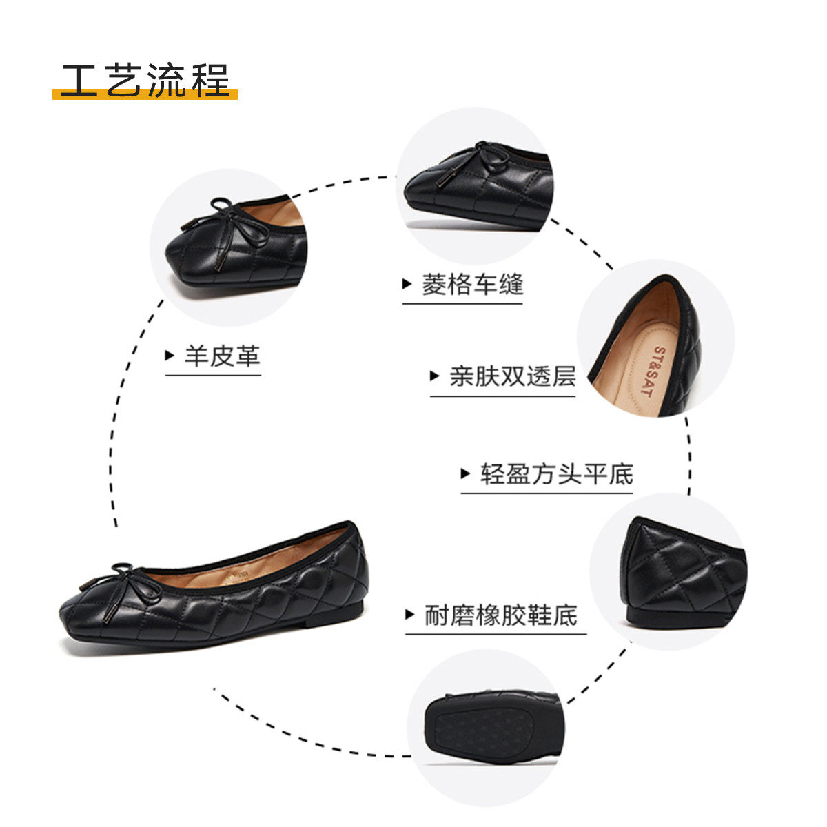 星期六羊皮浅口单鞋2025春季新款休闲软底舒适百搭平底面包通勤鞋