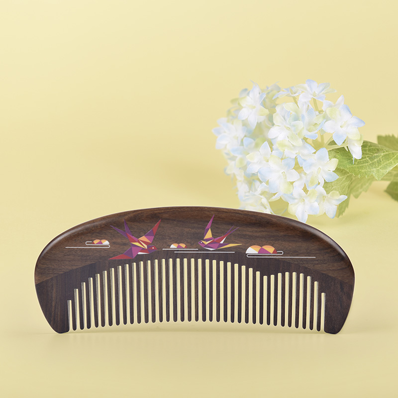 谭木匠礼盒漆艺梳合乐天然木梳子女士专用按摩经络梳护可定制