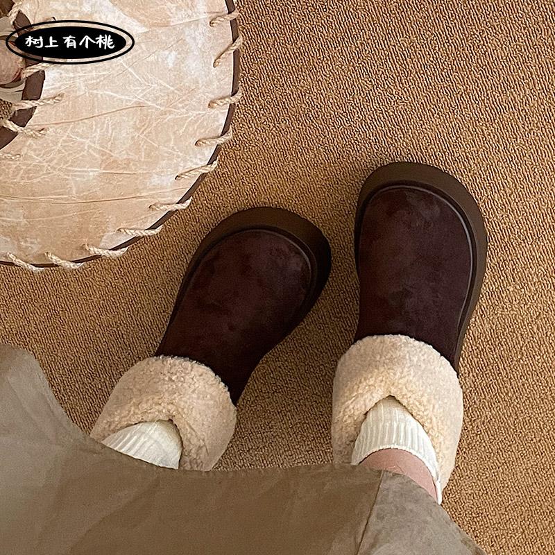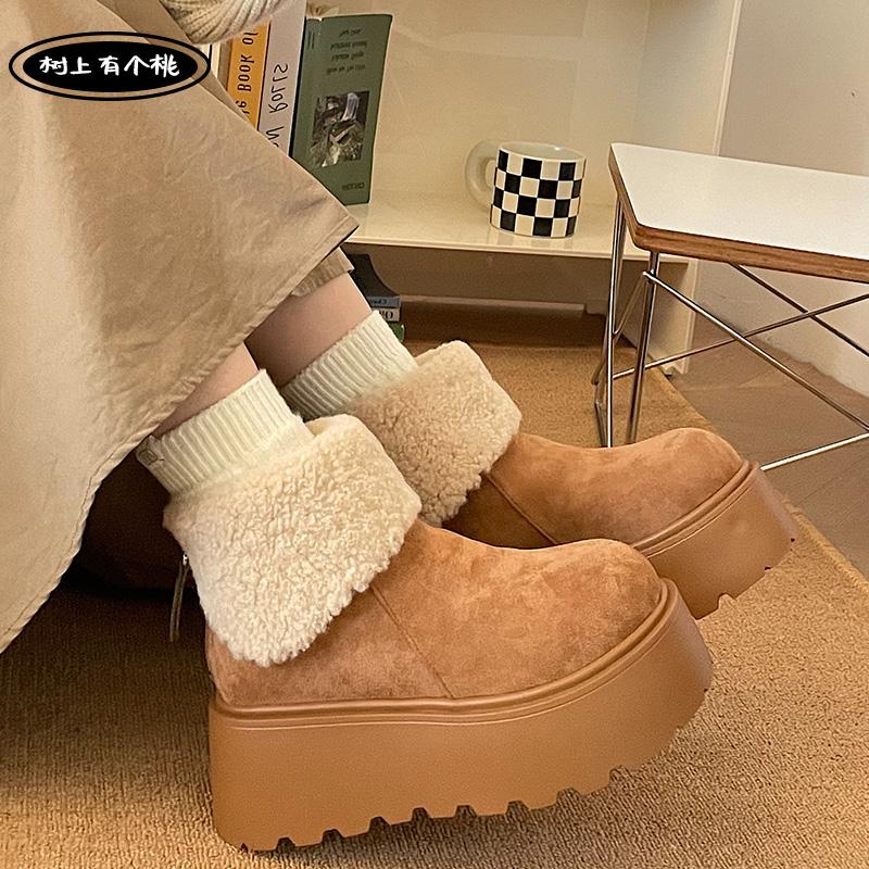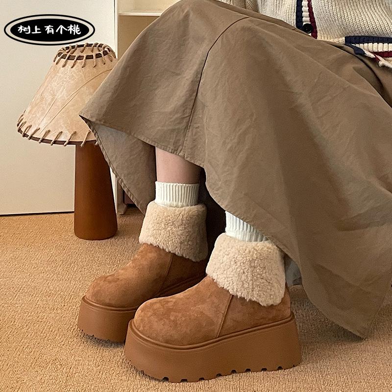 树上有个桃复古厚底雪地靴女2025冬季新款百搭增高加绒加厚棉鞋子