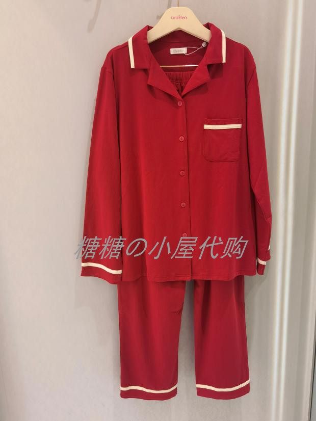 欧迪芬国内代购 女士长袖+长裤睡衣舒适新疆棉质家居服套装OH2734