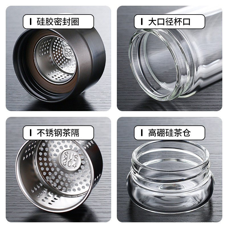 高档茶水分离杯泡茶杯加厚防烫双层玻璃杯高硼硅耐高温便捷水杯子
