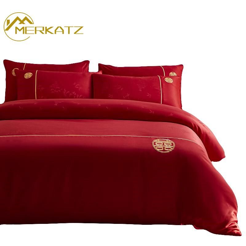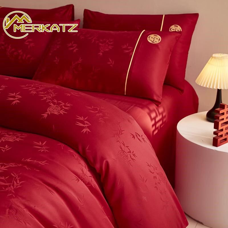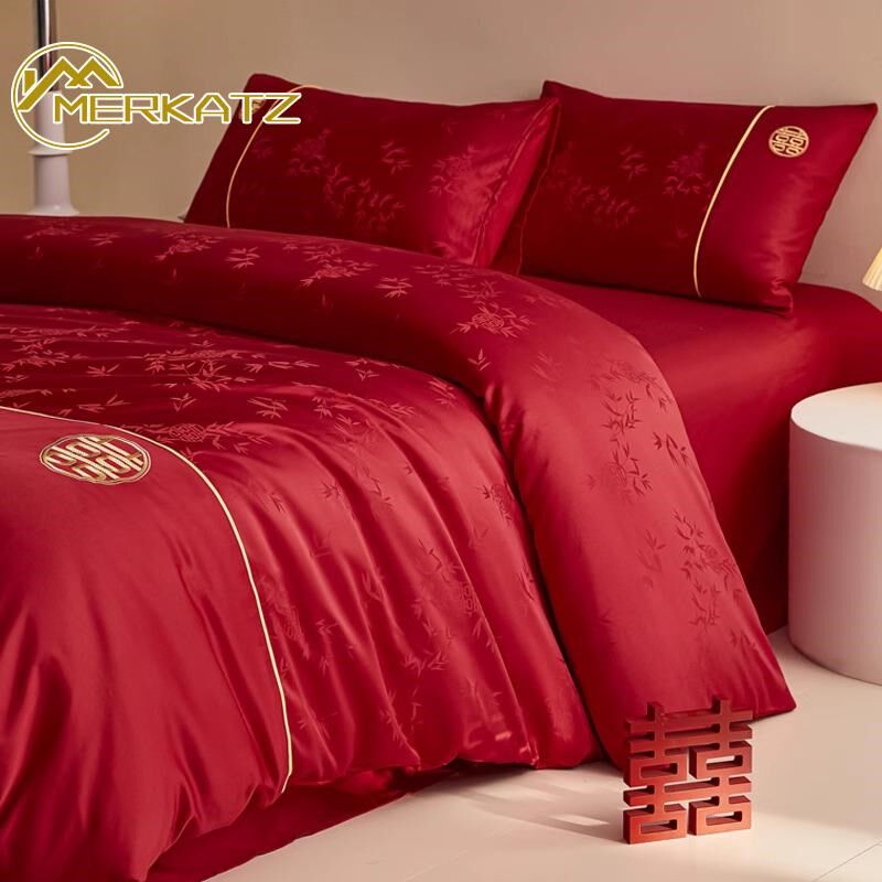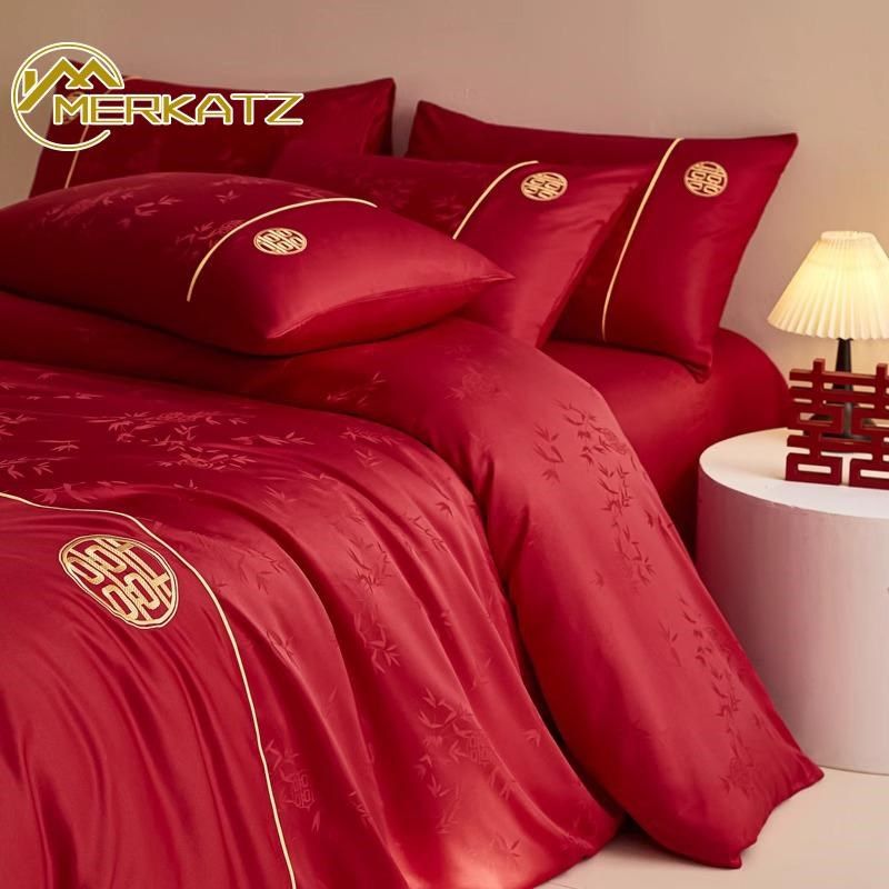 轻奢四件套高档提花婚庆大红色床单被G套轻奢纯棉全棉新婚房被床