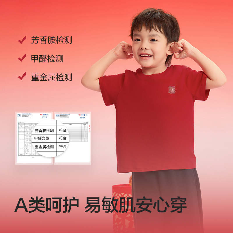 巴拉巴拉童装儿童T恤2025春夏新款男童短袖红色女童打底衫舒适潮