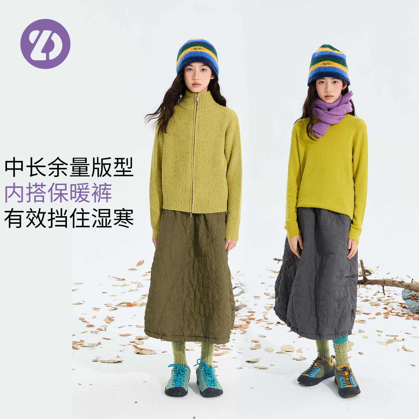 LittleDeeyoo童装女童半身裙秋冬儿童绗棉保暖中长款户外裙子冬装