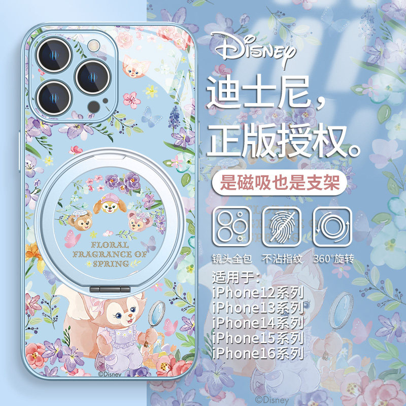 适用iPhone16磁吸带支架手机壳苹果15promax迪士尼玲娜贝儿14plus卡通13pro可爱12女款小米15高级感mate70pro