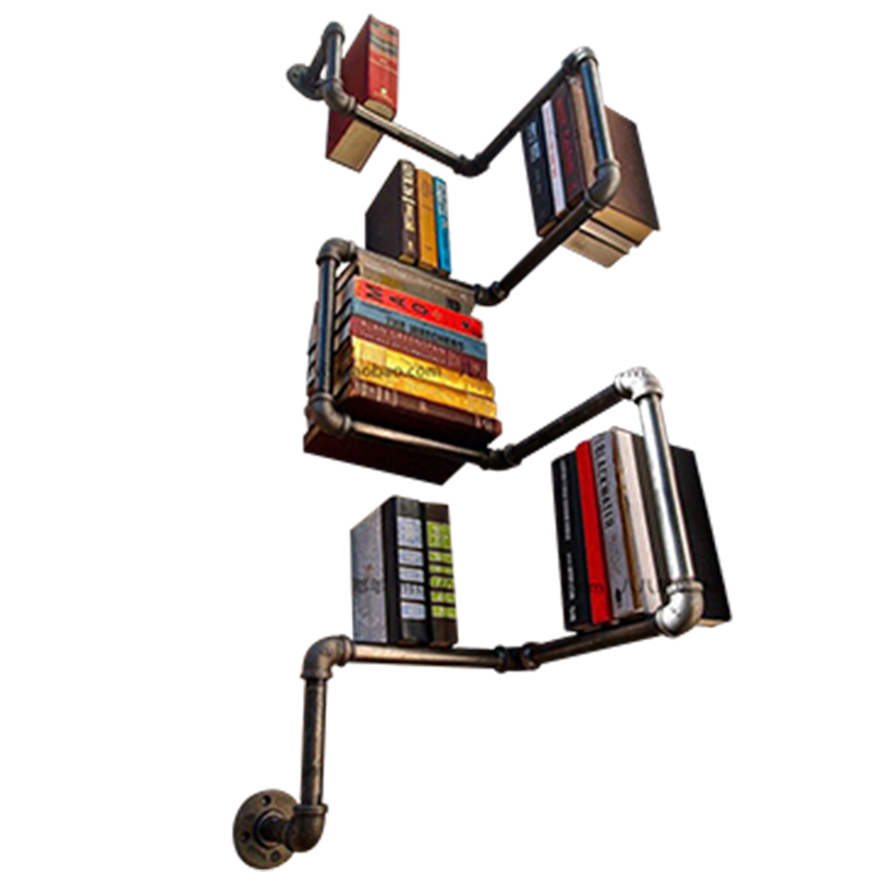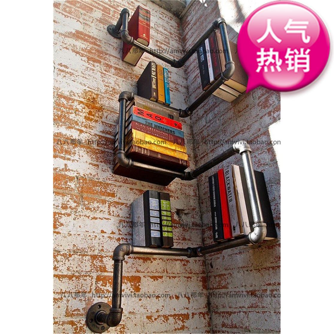 铁艺书架墙上水管置物架壁挂展示架墙角装饰创意工业管道复古书架