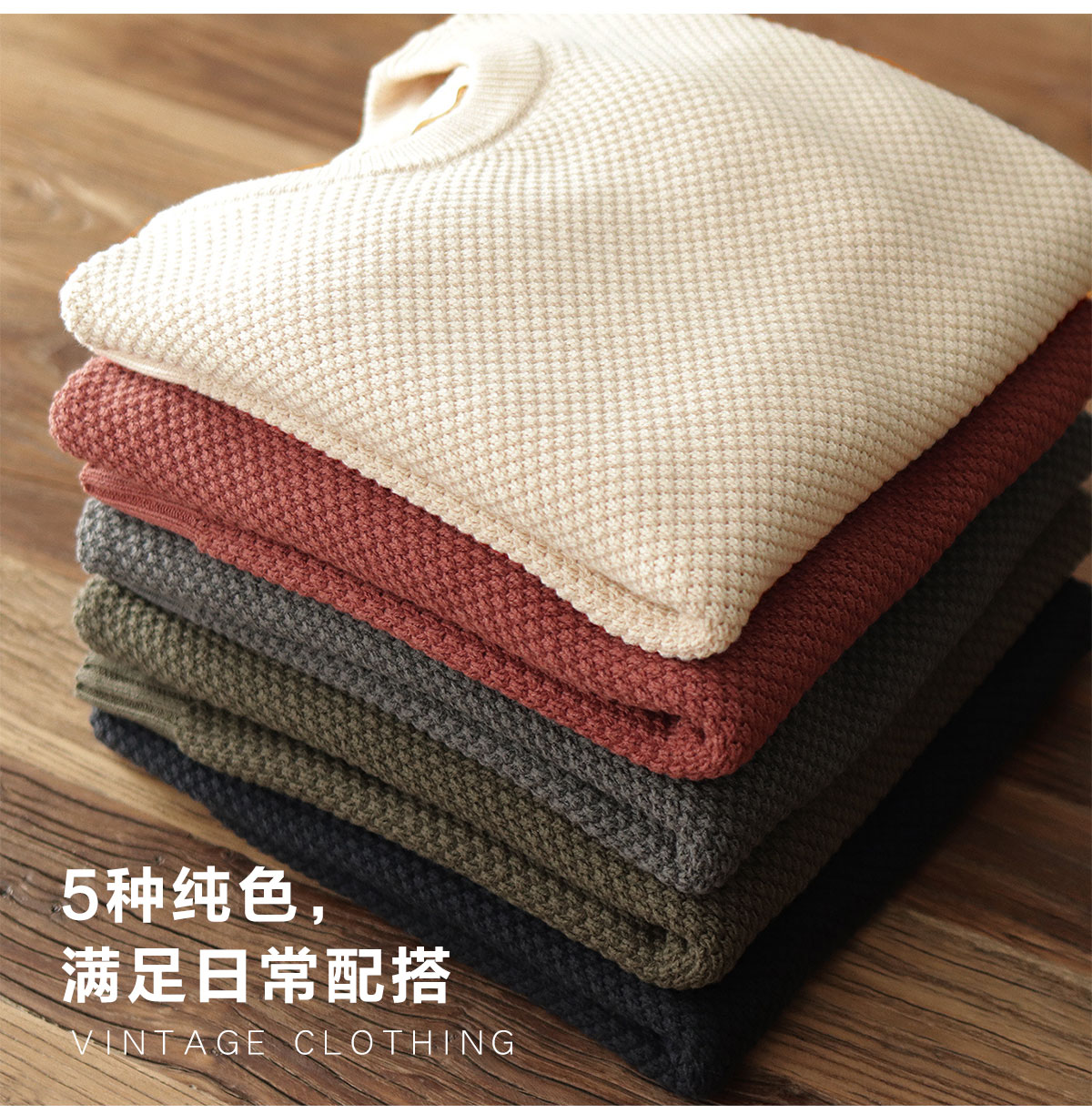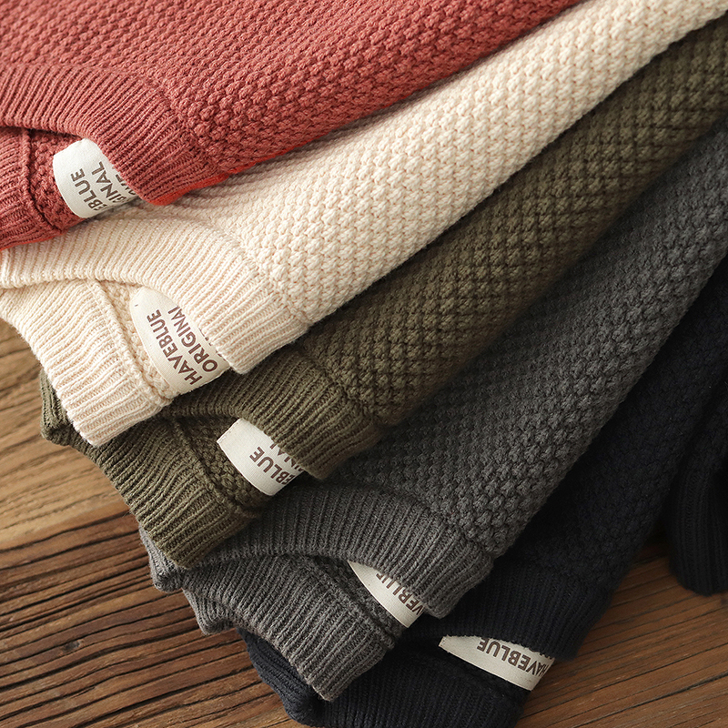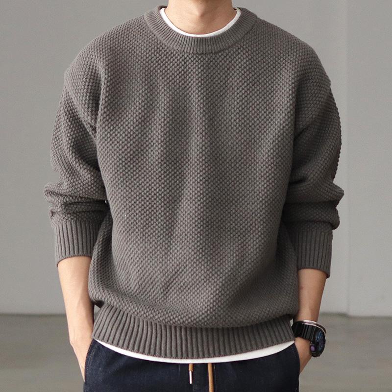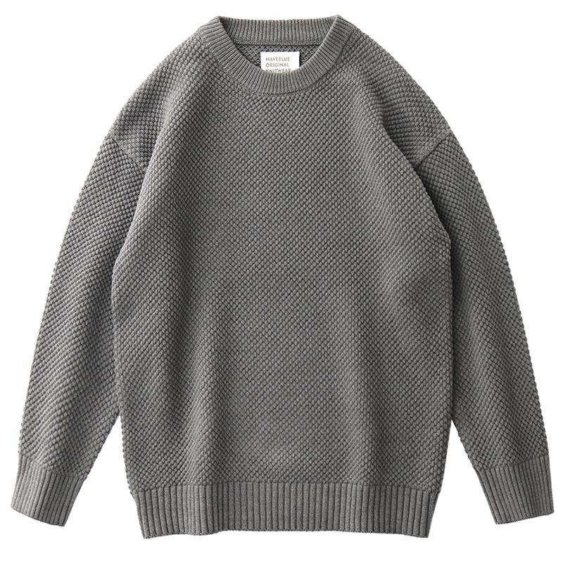 重磅落肩宽松毛衣男日系复古菠萝提花慵懒粗针加厚圆领针织衫外套