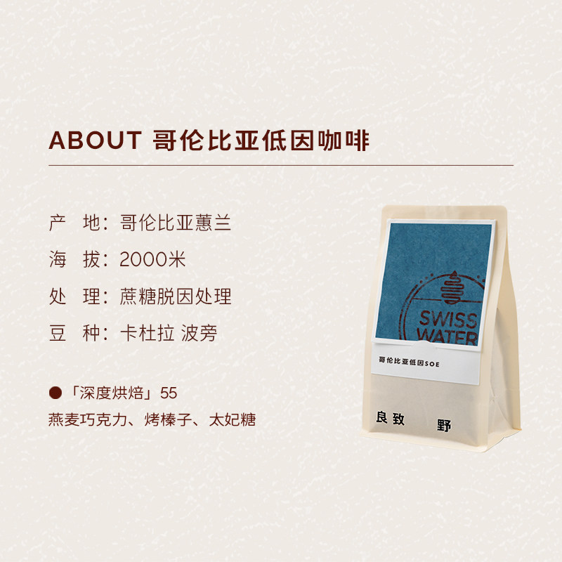 良致【低因咖啡】香浓焦糖巧克力哥伦比亚手冲意式低因咖啡豆200g
